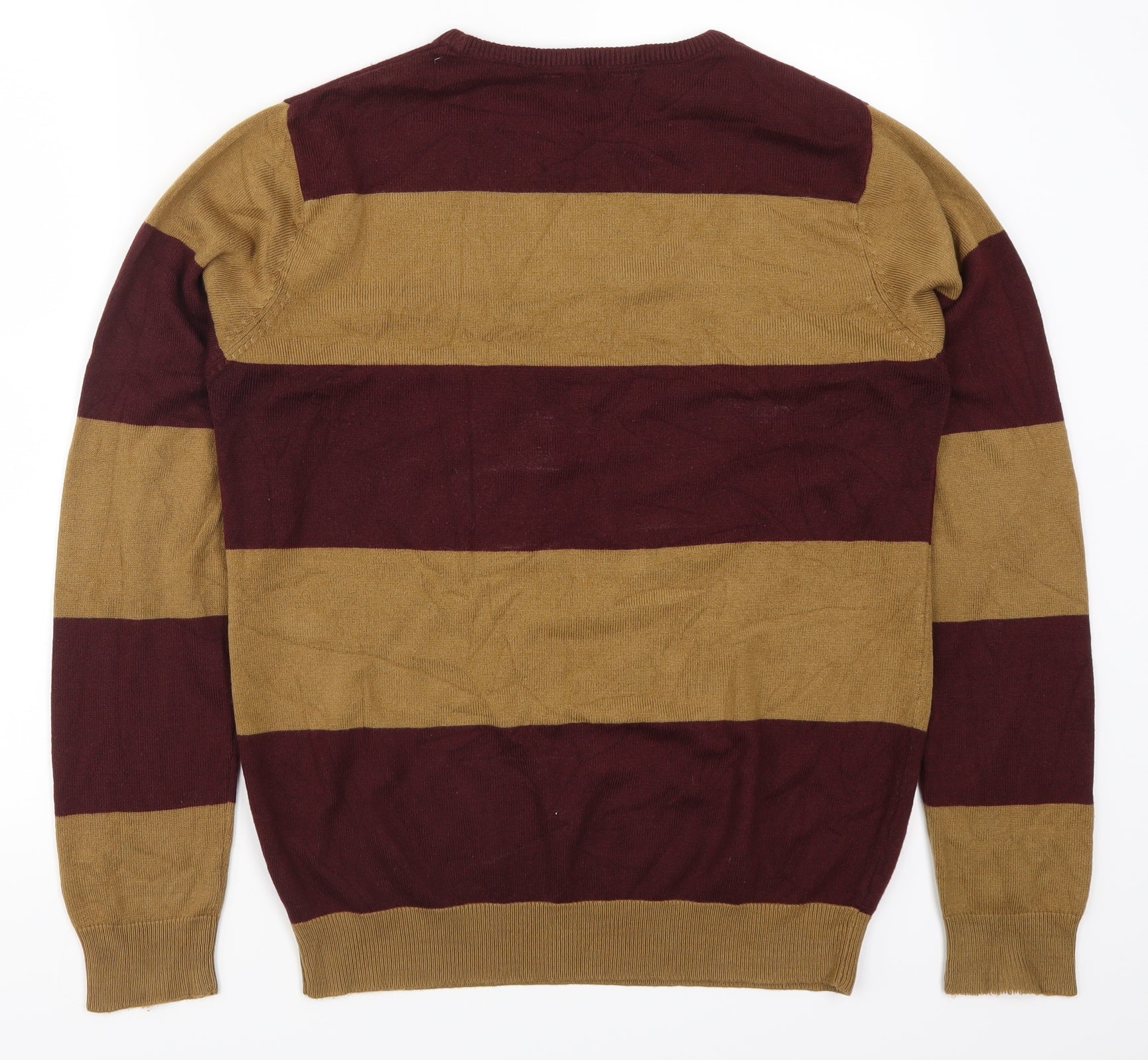 Mens Red Striped Knit Pullover Jumper Size M - Brown