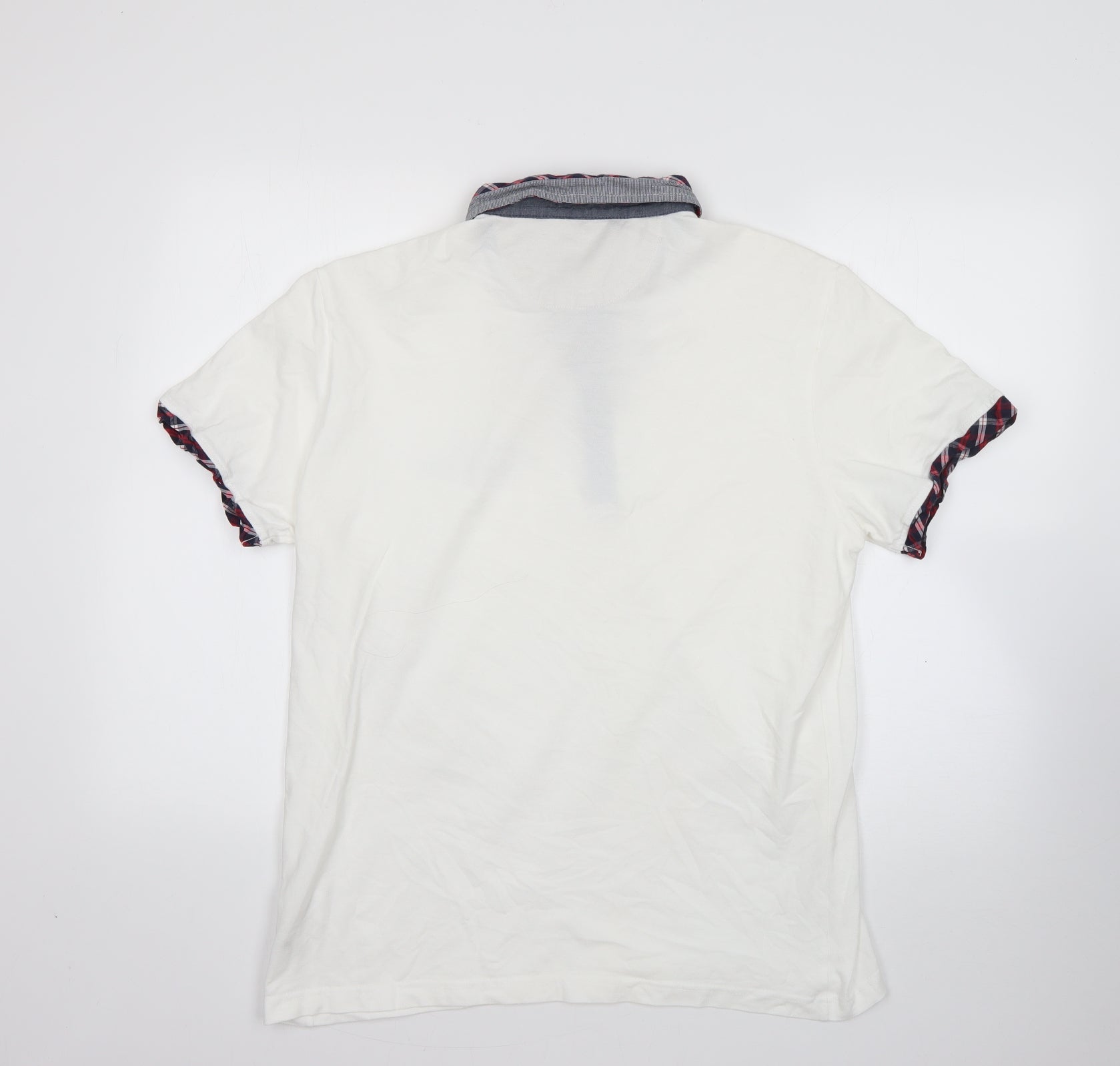 Massimo Dutti Men's White Cotton Blend Polo Shirt Size L