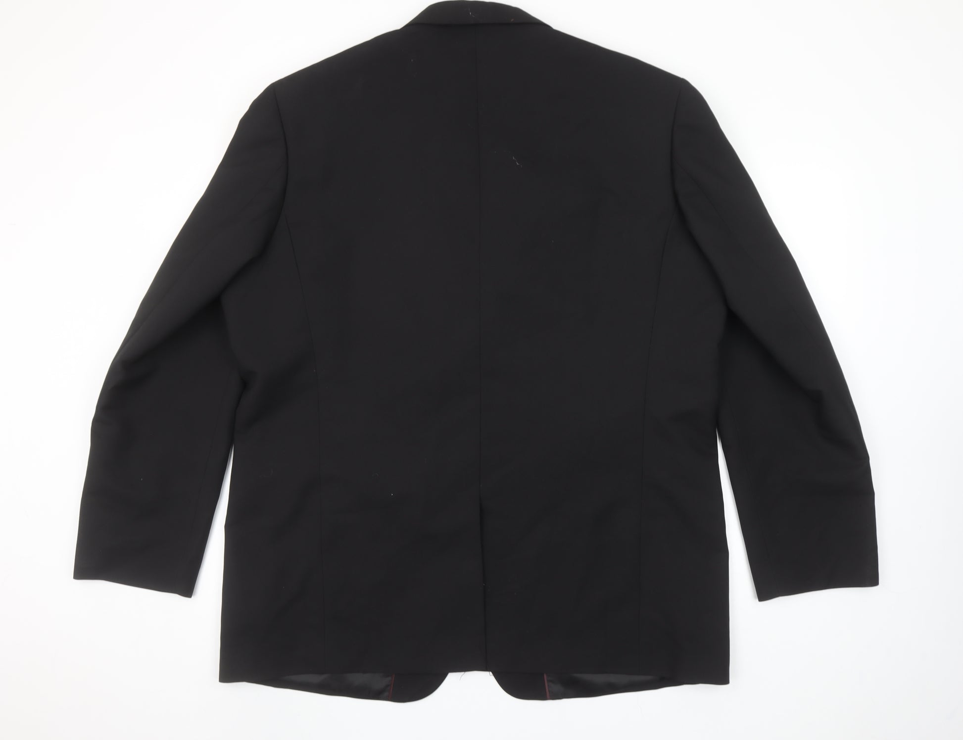 This sophisticated Cedarwood State Men's Black Blazer offers a timeless and versatile addition to any smart wardrobe. Crafted from 100% polyester, the jacket features a smooth, durable twill construction that delivers quality you can rely on. Designed in a 46-inch chest Regular Fit, it provides both comfort and a flattering silhouette suitable for business, formal, and special occasions.The single-breasted front with three-button fastening and classic notch lapels give this blazer a modern, understated aesthetic. Thoughtfully tailored with structured shoulders and a full polyester lining, it promotes lasting shape retention and a clean drape. Two front flap pockets, a chest welt pocket, and functional inner pockets add practical appeal without compromising on style.Subtle detailing such as three-button cuffs and a double-vented back ensures enhanced comfort and mobility while maintaining a polished appearance. Whether paired with matching trousers for a business suit ensemble or dressed down with dark jeans for a smart-casual look, this piece transitions effortlessly from the office to after-hours events.Maintaining the garment’s pristine condition is made simple with its dry clean only care instructions. The blazer remains in excellent pre-owned condition with light signs of wear, demonstrating careful use. The black colouring and smooth fabric make it a dependable choice for year-round wear, especially during cooler autumn, spring, and winter months.Ideal for anyone seeking a reliable, classic jacket updated with subtle contemporary appeal, this Cedarwood State blazer is a perfect fit for the modern gentleman. Whether you are dressing for a meeting, formal occasion, or social gathering, this piece ensures you always look refined, confident, and effortlessly well-dressed.