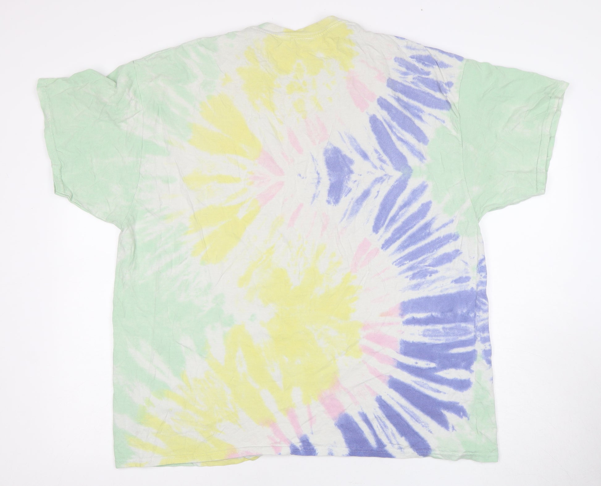 Embrace the cosmic vibes with this Celestial Tie-Dye T-Shirt, perfectly suited for both men and women. Bathed in a mesmerising blend of pastels, this multicoloured tee stands out with its intricate tie-dye pattern, ideal for those who appreciate a touch of the mystical in their wardrobe. Crafted from soft, breathable 100% cotton jersey, it promises comfort and style throughout the summer season. The casual short sleeves and classic crew neck design make it perfect for any laid-back day, whether you're hanging out with friends or exploring new destinations. Its regular fit flatters every body type, ensuring you look effortlessly cool. With a touch of celestial charm and the slogan 'Be True to Yourself', this t-shirt encapsulates a free-spirited outlook. Ideal for casual occasions or adding a splash of colour to your everyday look, it's a piece that speaks volumes about personality and style. Machine washable, it's easy to care for, maintaining its vibrant colours and soft touch. Some slight signs of wear enhance its unique appeal, marking it as a well-loved gem ready for its next adventure. Priced reasonably, it offers great value, inviting you to join the celestial trend without breaking the bank. Wear it proudly and let the universe guide your style choices.