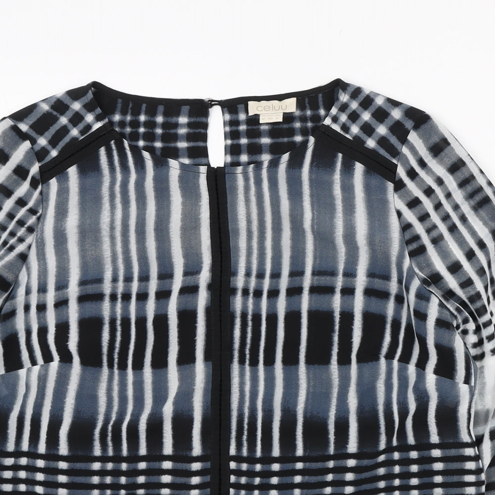 Womens Blue Geometric Polyester Basic Blouse Size 12 Round Neck