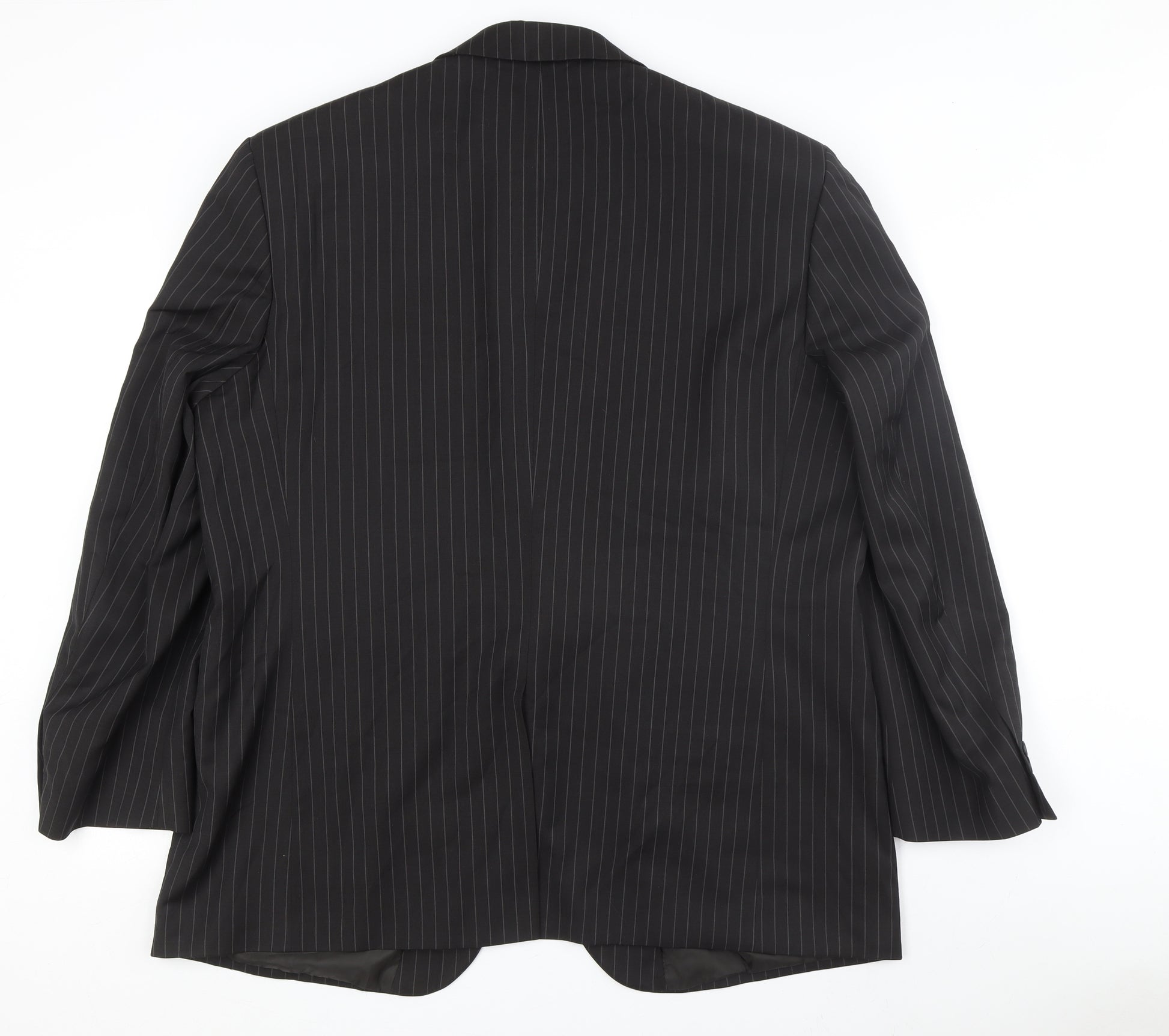 Elevate your formal wardrobe with this essential Centaur Men's Black Pinstripe Suit Jacket. Expertly tailored, this jacket boasts a classic single-breasted cut that exudes timeless elegance. The smooth black fabric is highlighted by subtle pinstripes, offering a sophisticated look perfect for business or formal occasions. Crafted from a comfortable blend of polyester, wool, and elastane, this suit jacket not only looks great but feels it too. Its regular fit ensures both comfort and style, with a 48-inch chest size suitable for everyday luxury wear. Key features include a two-button front and a single vented design, allowing for ease of movement. The notch lapel adds a refined touch, while the sleek lining ensures a perfect finish. With dry-clean only care, maintaining its pristine condition is straightforward. Despite being gently pre-worn, it remains in excellent condition with no visible wear or damage. Priced at a reasonable £45.00, this piece is ideal for those seeking quality and style without compromising on budget. Whether you're attending a wedding, stepping into the office, or simply looking to elevate your everyday attire, this Centaur Suit Jacket is the versatile piece you need.