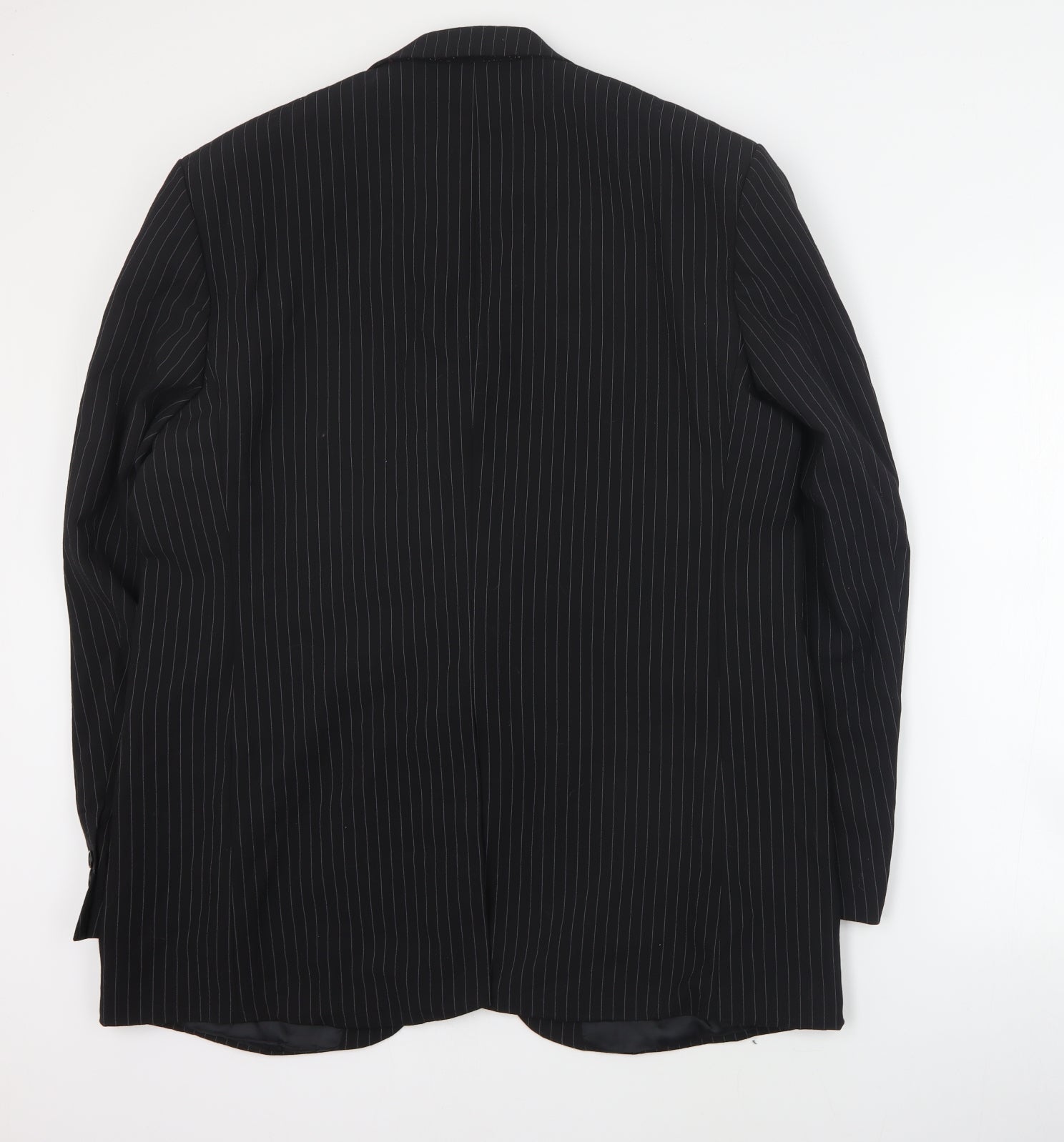 Mens Black Striped Polyester Jacket Suit Jacket Size XL