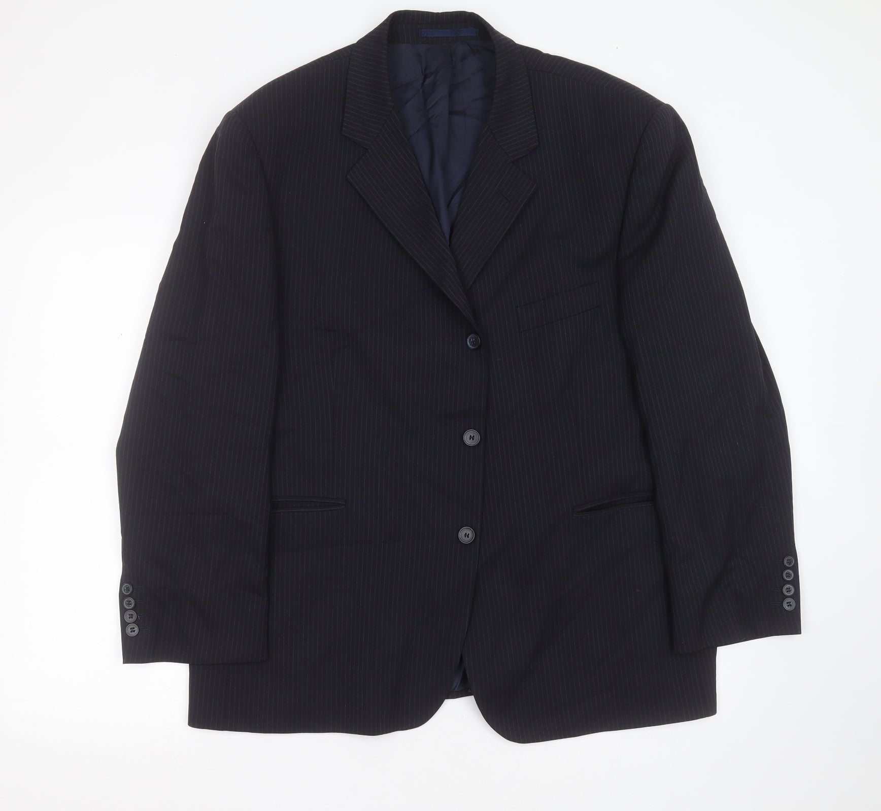 Mens Blue Striped Wool Jacket Suit Jacket Size 46