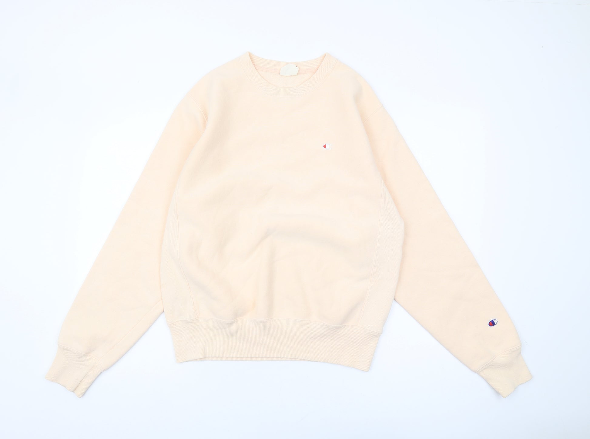Beige Unisex Sweatshirt Small Pullover Crew Neck