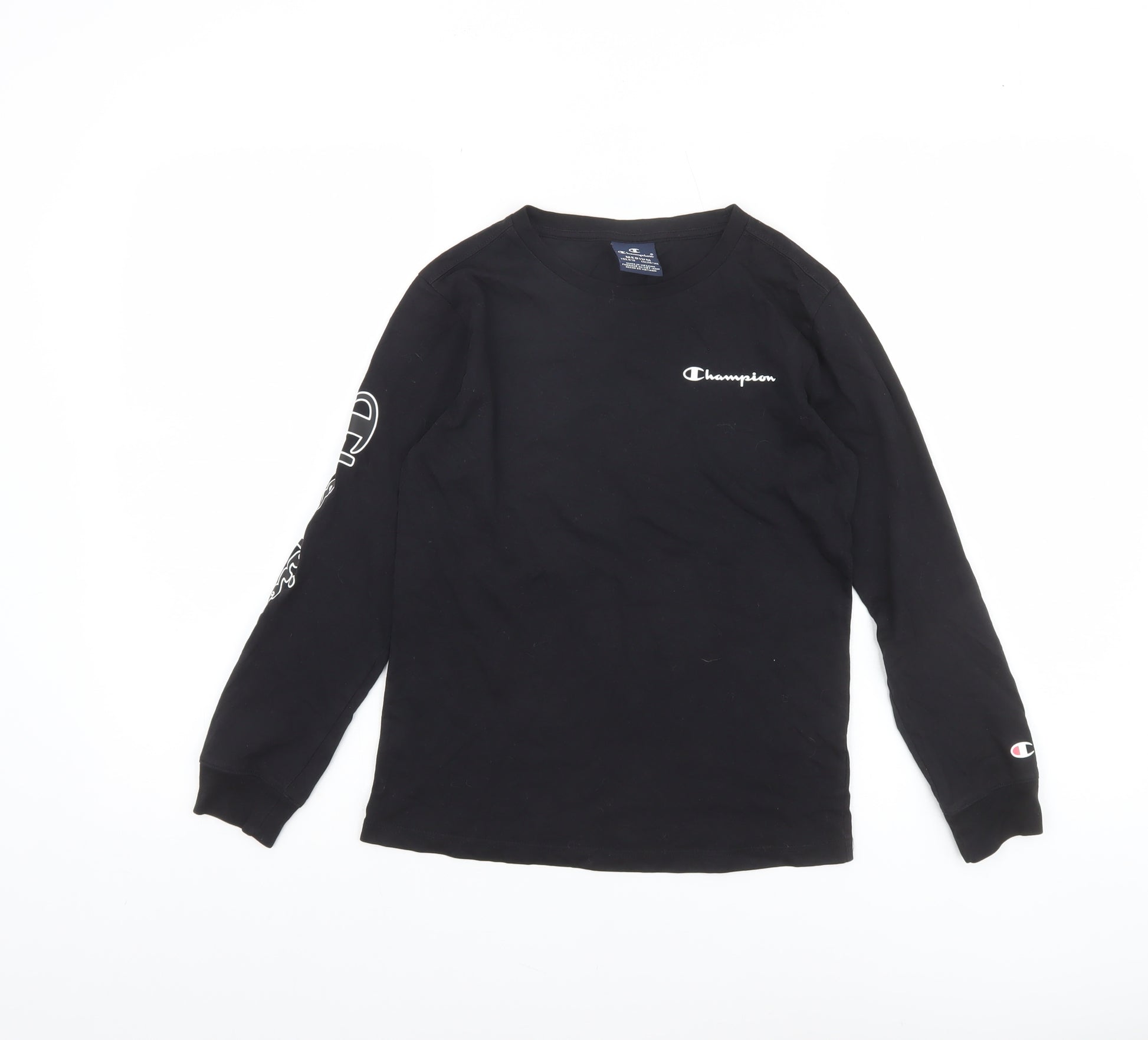 This Champion Boys black long sleeve T-shirt is a comfortable and stylish staple for any young wardrobe. Made from soft 100% cotton, it provides breathable wear and all-day comfort, making it perfect for school, sports, or casual outings. The classic crew neck design gives it a modern yet timeless look, while the ribbed cuffs help retain warmth during cooler months. The sleeve and chest feature Champion’s signature embroidered logo, adding a premium sporty touch. The solid black colour ensures versatility, easily paired with jeans, joggers, or shorts for a variety of casual looks. The lightweight jersey fabric allows for freedom of movement without compromising durability. Suitable for active boys aged 9–10 years, this regular fit T-shirt is ideal for layering under hoodies or jackets. Designed for comfort across multiple seasons—particularly autumn, spring, and winter—it’s perfect for everyday activities ranging from gym sessions to weekend play. With its pullover closure and easy machine washable care, maintaining this shirt is simple and hassle-free. In excellent pre-owned condition without tags, this top shows no signs of significant wear, making it a great find for families seeking durability and quality without the retail price. Elevate your child’s wardrobe with this Champion long sleeve tee—combining fashionable simplicity with the sports-inspired detail the brand is known for. Whether worn on its own or layered, it’s a high-quality, reliable choice that offers both comfort and style. A must-have piece that promises great versatility and enduring value for the price.