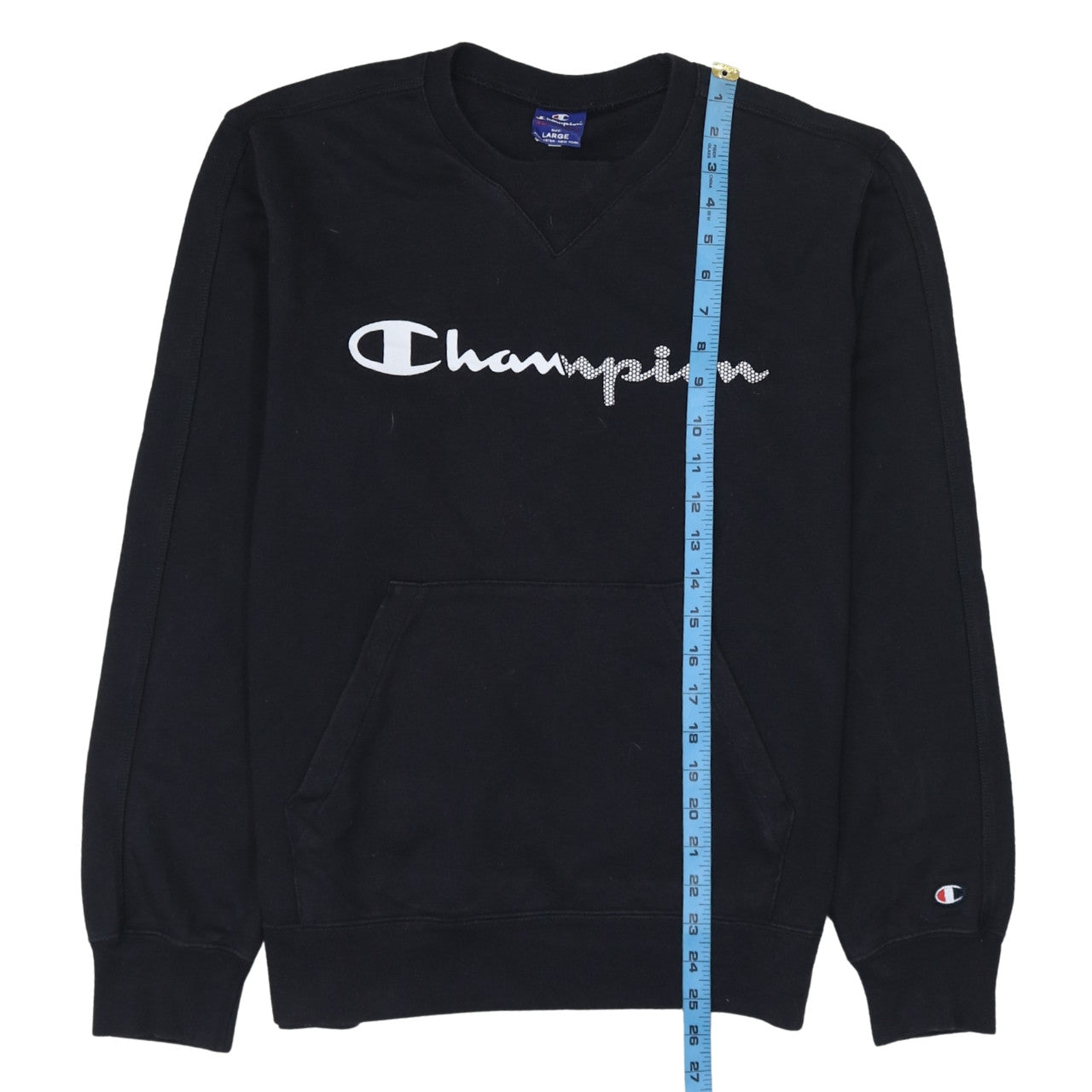 Step into timeless athletic style with this black Champion sweatshirt, crafted for men who value both comfort and streetwear appeal. Made from a soft blend of cotton and polyester, this pullover sweatshirt delivers breathable warmth suitable for autumn, spring, and winter wear. The bold front features the iconic Champion logo embellished with rhinestones, adding a standout touch to its classic sporty look. Designed with a crew neck and long sleeves, it offers a relaxed, regular fit for easy layering over tees or under jackets. The heavyweight jersey fabric holds its shape while feeling soft against the skin, ensuring both quality and durability. A practical front pocket adds everyday convenience, making it perfect for casual outings, lounging, or light training sessions. Whether you’re heading to the gym, going for a walk, or simply enjoying a laid-back day, this sweatshirt pairs effortlessly with jeans, joggers, or shorts. The black colourway makes it highly versatile and easy to style with your favourite wardrobe staples. Machine washable for easy care, this Champion sweatshirt is built to last through repeated wear and wash. With only light signs of wash wear and no damage noted, it remains in excellent condition—ideal for anyone seeking premium comfort at a great value. Elevate your casualwear collection with an authentic piece from Champion, combining quality craftsmanship with unmistakable style. This sweatshirt captures the brand’s sporting heritage with a contemporary edge that suits the modern man. Perfect for daily wear or gifting to a style-conscious individual. Add this essential Champion piece to your lineup today and enjoy dependable, iconic fashion that you can wear anywhere with confidence.