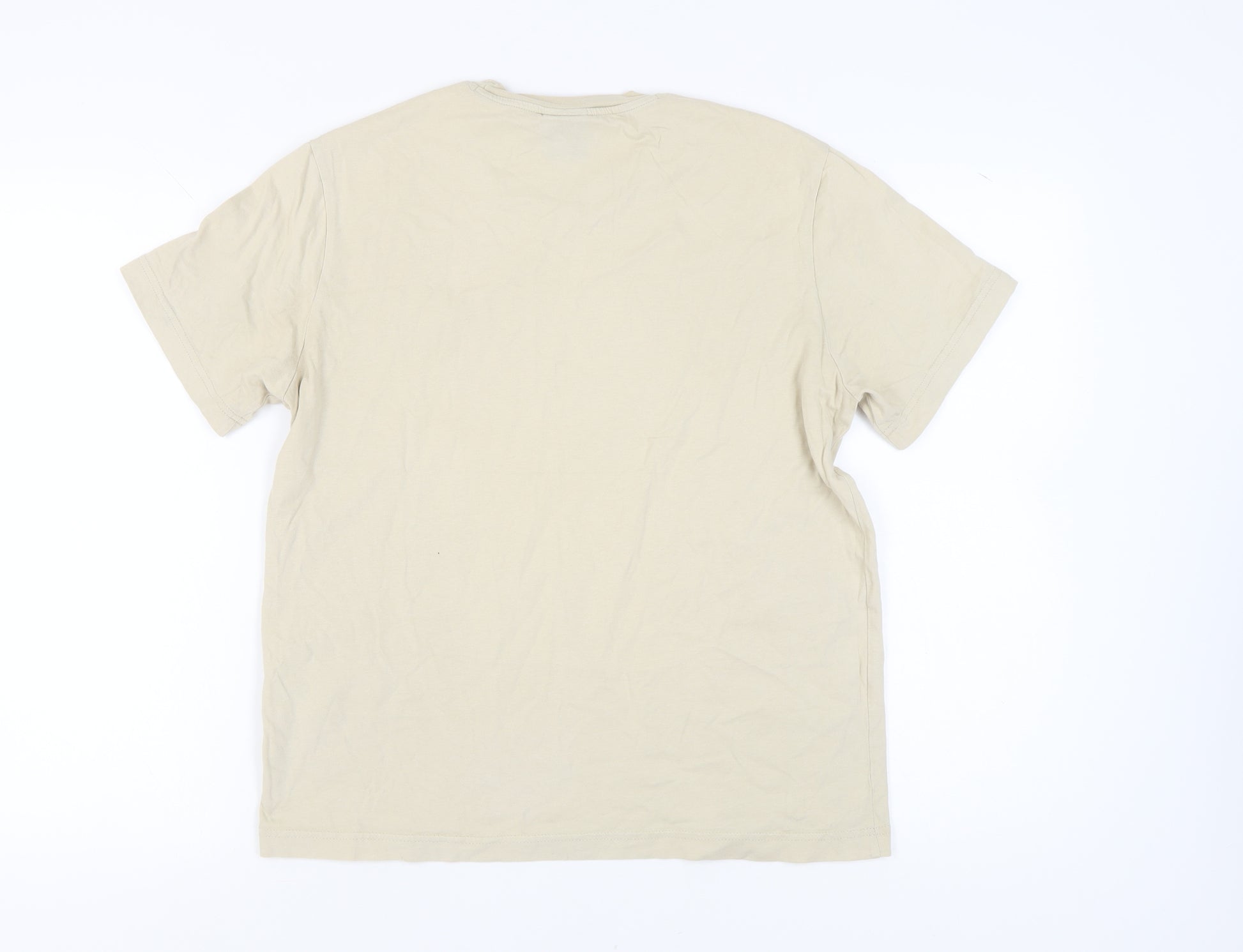 Men's Beige Short Sleeve T-Shirt - Large, Logo