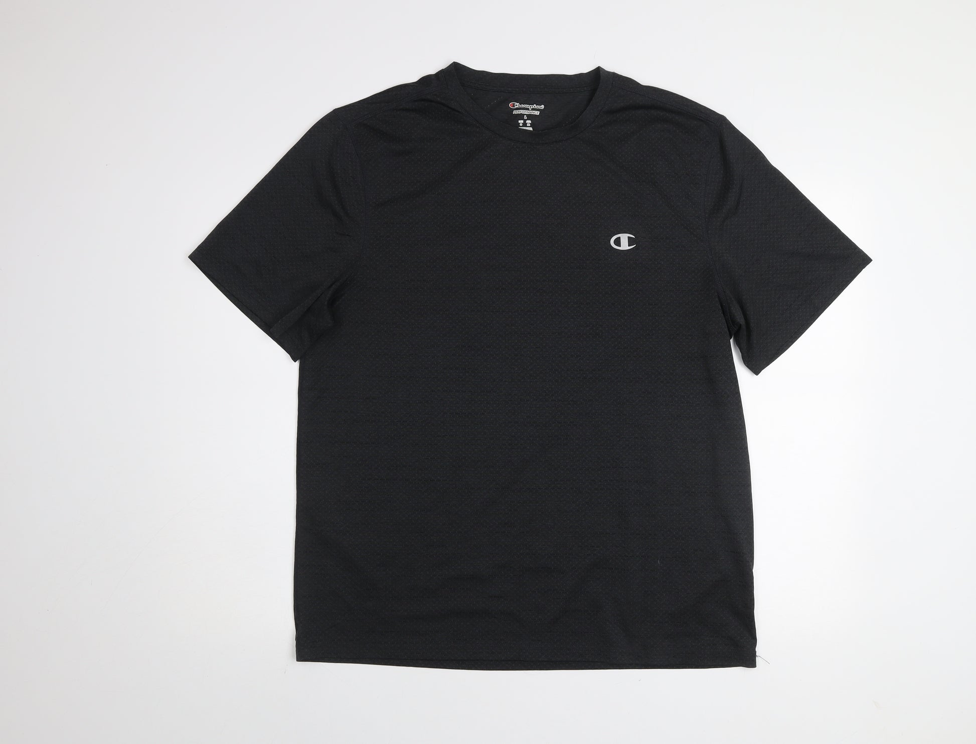 Step up your workout game with this Champion Men's Performance T-Shirt in classic black. Designed for comfort and durability, this athletic top features lightweight, breathable fabric that helps you stay dry and cool during every session. Crafted from 100% polyester, it delivers superior moisture-wicking technology, making it perfect for gym training, running, and other high-performance activities. The short sleeve design and crew neckline provide classic comfort while ensuring full mobility for every movement. Finished with Champion’s iconic logo, this T-shirt blends timeless style with modern functionality. The athletic fit flatters your physique without restricting motion, ideal for sports, gym sessions, or casual wear. Its versatile design transitions seamlessly from your workout routine to everyday life. Made to withstand active use, the moisture-wicking, quick-dry material ensures freshness and long-lasting wear, while the solid black colour makes it easy to pair with any activewear bottoms. Whether you're hitting the treadmill, lifting weights, or enjoying a casual outing, this Champion Performance top keeps you feeling confident and ready for action. In excellent condition with minimal signs of previous wear, it maintains its quality and performance. Perfect for spring, summer, or autumn training, this T-shirt combines functionality and style effortlessly. Machine washable for easy care, it’s a must-have staple for any active man’s wardrobe. Own a trusted piece of Champion heritage and experience lasting comfort and performance in one stylish, versatile tee.