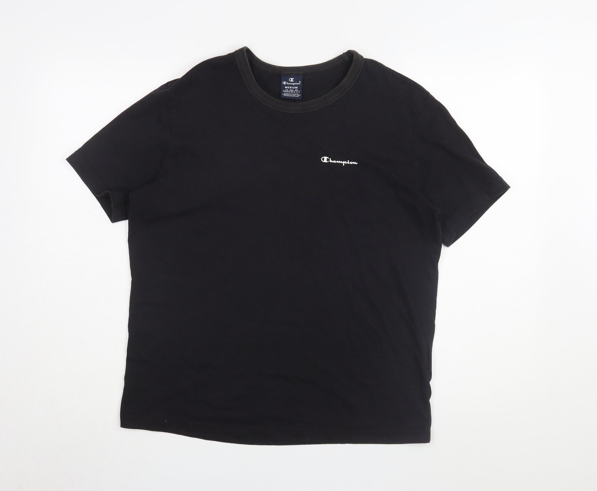 Upgrade your wardrobe with this classic Men's Champion Black T-Shirt in size Medium. Perfectly blending style and comfort, this t-shirt ensures you look effortlessly stylish while staying comfortable. Made of a soft and durable jersey fabric, comprising 60% cotton and 40% polyester, it provides a regular fit suitable for everyday wear. The solid black colour gives it versatility, allowing you to pair it easily with jeans, shorts, or joggers for a laid-back look. Featuring a crew neck and short sleeves, it's ideally suited for all-season wear. The embroidered Champion logo adds a touch of sporty elegance to your outfit. With easy machine-wash care, this t-shirt is low maintenance. Despite minor signs of wear, it maintains excellent condition, ready to be an essential piece in your collection.