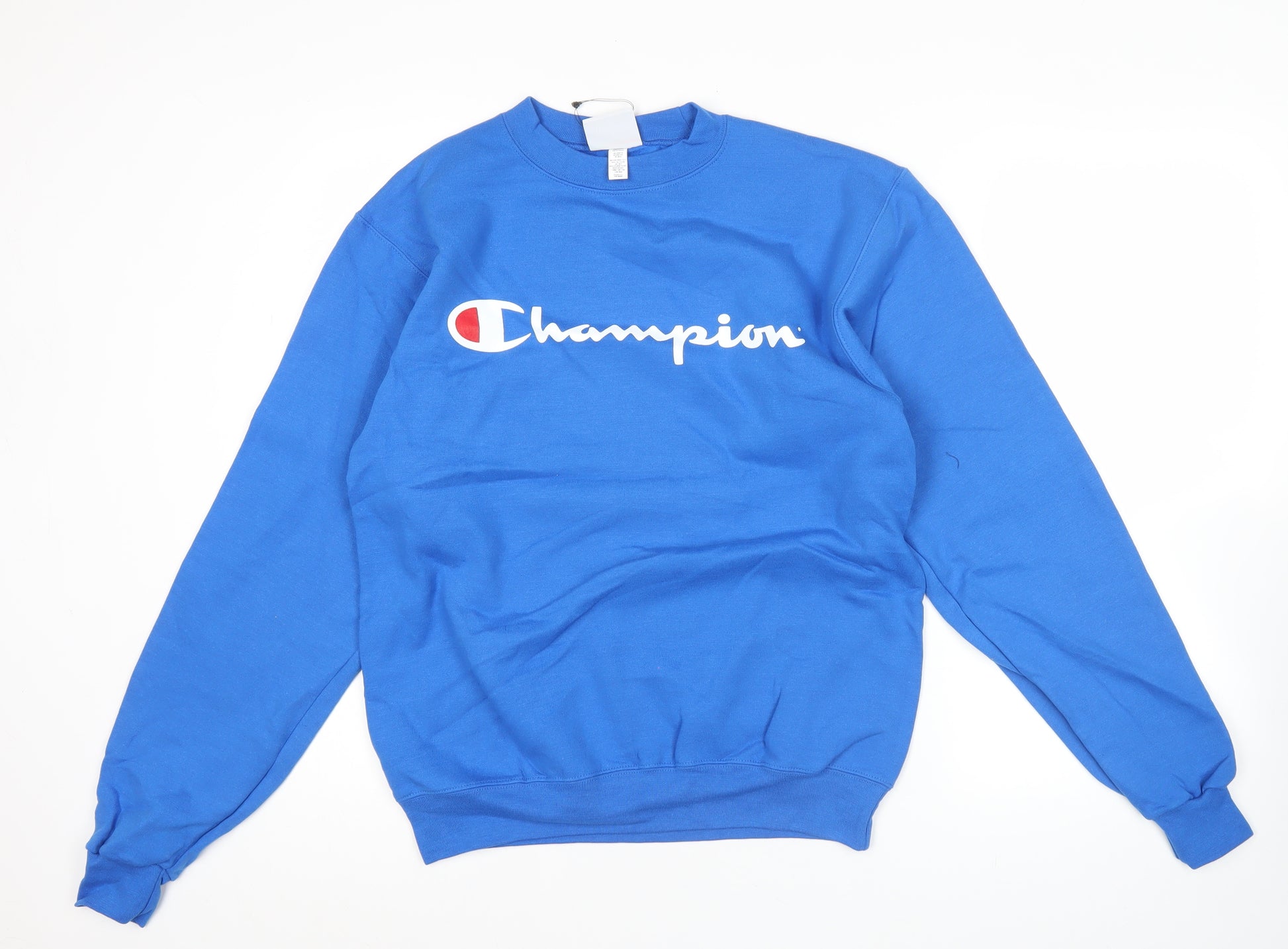 This Champion Men’s Blue Pullover Sweatshirt offers a perfect blend of style, comfort, and durability, making it a versatile choice for your wardrobe. Crafted from a balanced mix of 50% cotton and 50% polyester, the sweatshirt provides both softness and resilience, ensuring it holds its shape and colour after multiple washes. The fabric type is jersey, offering a smooth, breathable feel ideal for all seasons, whether you're layering up for cooler days or wearing it as a standalone piece.Designed in a striking blue colour, this sweatshirt features the iconic Champion logo as a bold front graphic print, adding a sporty, confident look. The classic crew neck and long sleeve design ensure a comfortable, relaxed fit, making it suitable for both casual outings and active environments. The ribbed cuffs and hem enhance fit retention while contributing to a clean, finished appearance.Perfect for sports and leisure activities, this sweatshirt excels in gym and training scenarios, as well as running and jogging. The regular fit allows for easy movement, while the breathable fabric helps to maintain comfort during wear. The pullover style makes it easy to throw on, whether you're heading to the gym, meeting friends, or lounging at home.This piece is machine washable, offering easy care with minimal maintenance required. While pre-owned, it remains in excellent condition with no visible stains, rips, or flaws beyond slight creasing, ensuring it looks great and wears well.Ideal for autumn, spring, and winter wear, and suitable for everyday casual styling, this Champion sweatshirt is a must-have for those who appreciate athletic-inspired fashion with lasting quality. Don’t miss the chance to add this versatile and stylish piece to your collection today.