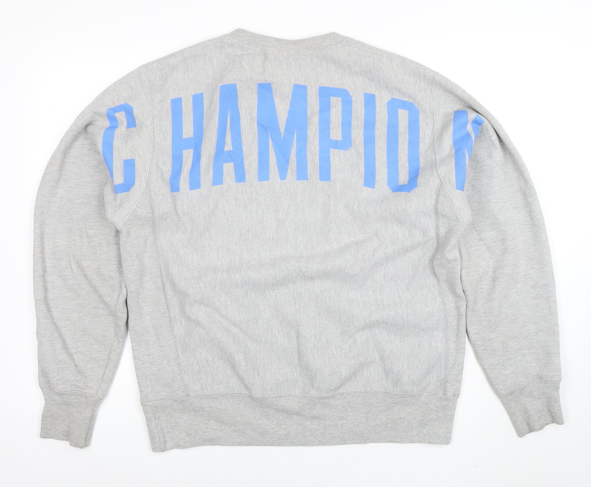 Elevate your casual wardrobe with this authentic Champion Reverse Weave sweatshirt, crafted for comfort and durability. Designed in a classic medium size, this timeless piece features a soft grey hue paired with Champion's signature blue logo detailing on the chest and bold lettering across the back. Made from a heavyweight fleece blend of 77% cotton and 23% polyester, it provides warmth and softness for everyday wear while maintaining its shape through repeated washing. The crew neck and regular fit offer a relaxed yet structured silhouette, perfect for layering over t-shirts or wearing on its own. Whether you’re heading to the gym, out for a casual walk, or lounging at home, this sweatshirt delivers performance comfort and enduring style. The pullover design and ribbed hem and cuffs ensure a snug, comfortable fit, while the graphic print adds a sporty edge that embodies Champion’s athletic heritage. This piece is machine washable for easy care. A small mark on the shoulder prevents it from being rated as excellent condition, but it still retains its quality and aesthetic appeal. Ideal for the modern man seeking a blend of practicality and sporty fashion, this versatile Champion Reverse Weave sweatshirt pairs effortlessly with jeans, joggers, or shorts. Perfect for cooler autumn, winter and spring days, it keeps you looking sharp and feeling comfortable. A great addition to any casual or sportswear collection.
