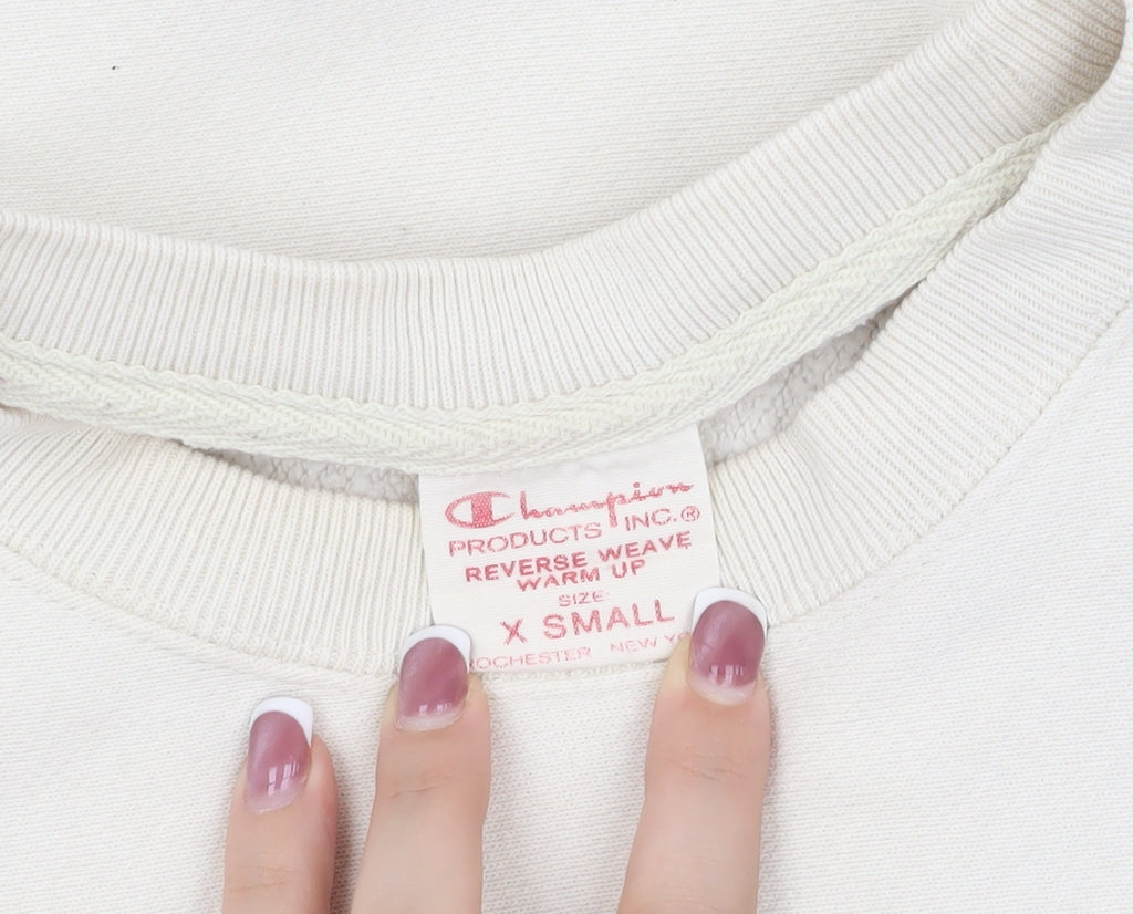 Introducing a versatile Champion men's pullover sweatshirt, perfect for those seeking both style and comfort. Crafted from a heavyweight fleece blend of 86% cotton and 14% polyester, this ivory sweatshirt offers superior warmth and durability, making it an ideal choice for autumn and winter wear. Designed with a classic crew neck and a regular fit, it ensures a comfortable feel without compromising on style. The iconic logo accentuating the design adds a touch of athletic flair, appealing to those who value brand integrity and legacy. Suitable for a variety of casual outings, this long-sleeved sweatshirt seamlessly combines practicality with timeless style. Despite slight marks on the sleeves, its condition remains very good, promising a durable addition to your wardrobe for numerous seasons. Elevate your casual ensemble by pairing it with jeans or joggers, making it a staple piece in every man's collection. Machine washable, it offers easy care, ensuring convenience for the modern lifestyle. This Champion men's sweatshirt is more than just a piece of clothing; it's a statement of quality and understated elegance.