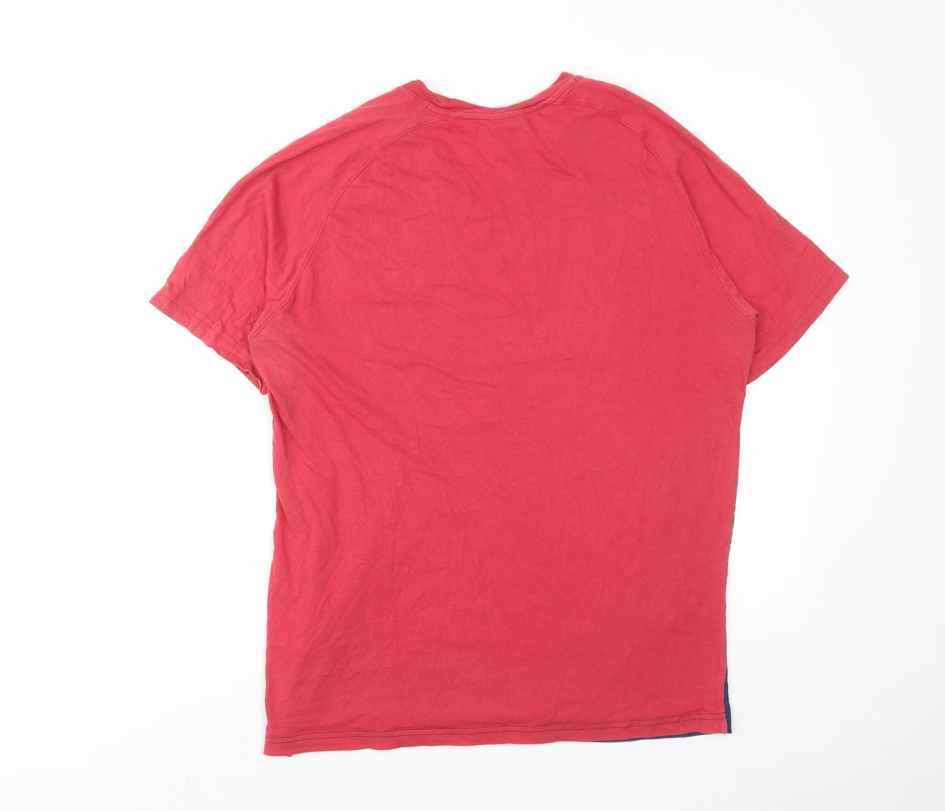 Mens Red Colourblock Polyester T-Shirt Size L Round Neck