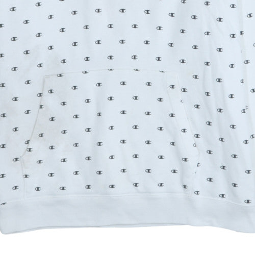 Add a timeless athletic edge to your wardrobe with this Champion Men's White Pullover Hoodie in size Large. Crafted from 100% soft cotton fleece, this hoodie combines comfort and style, making it an excellent choice for everyday wear, light workouts, or simply relaxing. The pullover design features a drawstring hood and a spacious front pouch pocket for convenience, along with ribbed cuffs and hem that help maintain its shape and ensure a snug fit. Decorated with repeated Champion ‘C’ logo prints across the fabric and a prominent embroidered chest logo, it balances sporty appeal with a stylish, casual look.Made for JD Sports, this high-quality hoodie upholds Champion’s long-standing tradition of durability and comfort. The breathable cotton fabric ensures all-season wearability, keeping you comfortable during cooler days or gym sessions. The crisp white colourway gives a clean aesthetic that pairs effortlessly with joggers, jeans, or shorts for a variety of laid-back looks. This hoodie’s versatile nature makes it perfect for gym and training, running, walking, or casual outings.In very good pre-owned condition with a minor mark on the front pocket, this hoodie retains its structure and softness, offering plenty of wear left. It’s machine washable for easy care and designed with a classic regular fit suitable for most body types. Whether you’re heading to the gym, layering up for a weekend outing, or lounging at home, this Champion pullover hoodie delivers dependable comfort and iconic streetwear flair.Upgrade your off-duty wardrobe with this Champion logo hoodie — a practical choice that blends modern athletic design with everyday versatility. Don’t miss the chance to own a piece that embodies Champion’s renowned blend of comfort, quality, and understated sporty style.