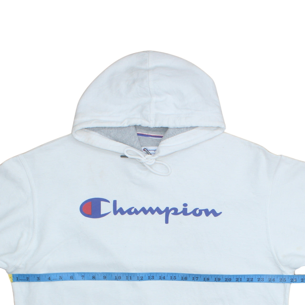 Elevate your casual wardrobe with this Champion Men's White XL Pullover Hoodie, crafted for both comfort and timeless athletic style. Designed from a soft and durable cotton-polyester blend, this hoodie ensures a cosy yet breathable fit that's perfect for all seasons. The fleece fabric provides warmth for cooler days while maintaining a lightweight feel that layers easily over any outfit. Featuring Champion’s signature logo print boldly displayed across the chest, this hoodie brings a touch of vintage athletic flair to your everyday look. The classic pullover style with an adjustable drawstring hood and a spacious kangaroo pocket offers both functionality and laid-back appeal, making it ideal for gym sessions, outdoor jogs, or relaxed weekends. Finished with ribbed cuffs and hem for a snug fit, it maintains its shape wash after wash. The white colourway provides a clean and versatile base that pairs effortlessly with jeans, joggers, or shorts. Though pre-owned, this hoodie remains in very good condition with only slight discolouration on the front, indicating minimal wear. Machine washable for easy care, it’s a practical addition to any wardrobe that values both quality and comfort. Whether you’re hitting the gym, lounging at home, or meeting friends, this Champion hoodie combines sport-inspired design with everyday versatility, offering a relaxed yet confident look synonymous with the brand’s heritage of authentic athleticwear. Make this staple piece yours to enjoy reliable performance and enduring style for every casual occasion.