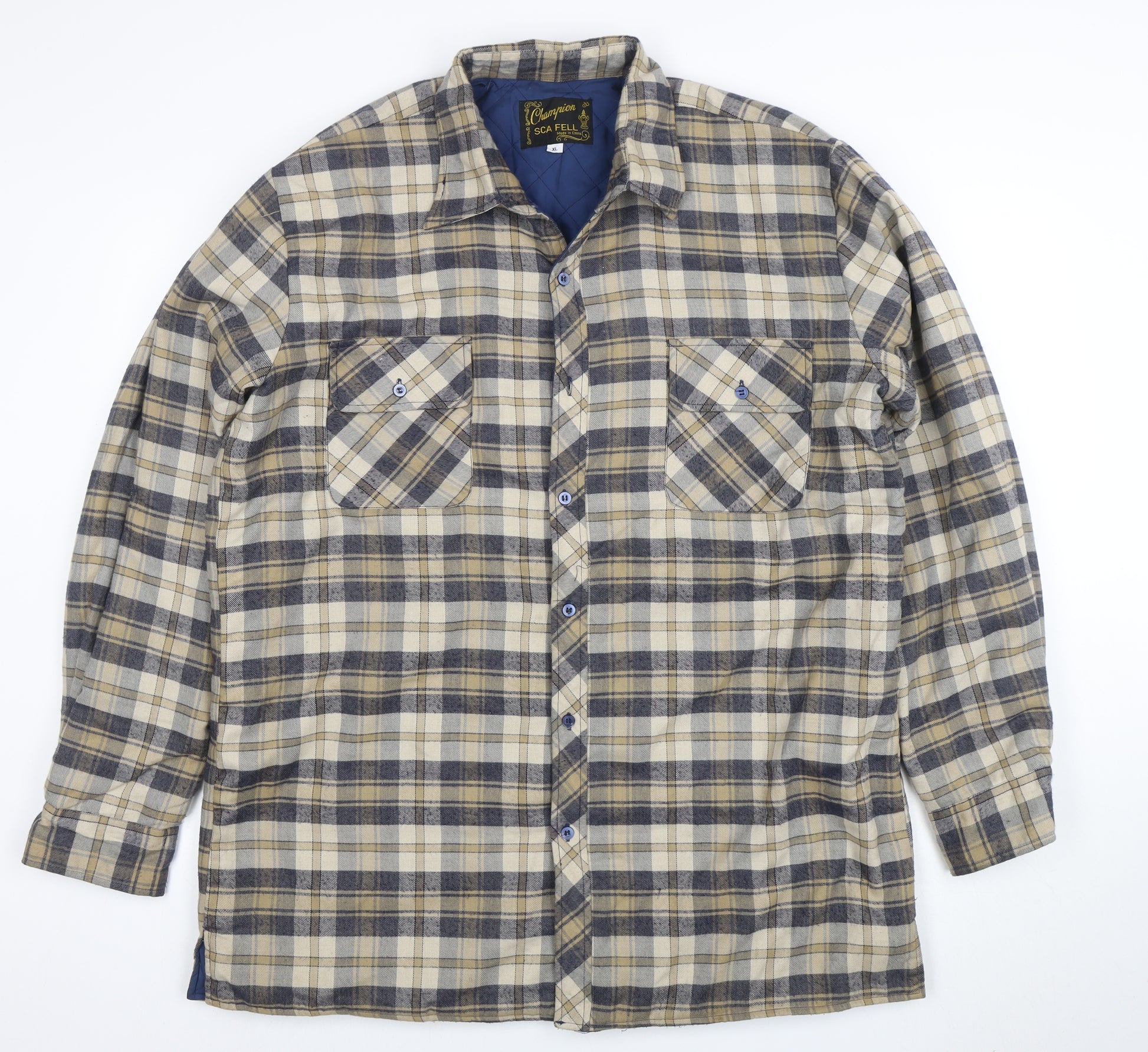 Stay comfortable and warm with this Champion SCA FELL men’s beige check flannel jacket, crafted for casual outdoor wear. Built in a classic design with a soft cotton-blend flannel outer and a quilted polyester lining, this piece provides reliable warmth without sacrificing breathability. The flannel check pattern in beige, cream, and muted blue tones lends a timeless outdoorsman appeal. Featuring a button front closure, point collar, and two buttoned chest pockets, it perfectly blends functional style with rugged practicality. Designed for everyday versatility, this jacket suits workwear, countryside walks, or relaxed weekends. The regular fit in size XL ensures comfort and easy layering, while the mid-length cut keeps it practical for cool Autumn or Winter days. With durable polyester insulation and a cotton-rich shell fabric for a natural feel, it is both lightweight and robust enough to withstand seasonal wear. Machine washable and easy-care, this piece balances function and fashion effortlessly. Whether you’re styling it with jeans and boots for a casual day out or using it as a handy layering piece, this classic checked jacket is a wardrobe essential for any man who values comfort and understated style. Excellent condition with light general wear and no visible flaws, this jacket remains a highly wearable and dependable item from the Champion SCA FELL collection.