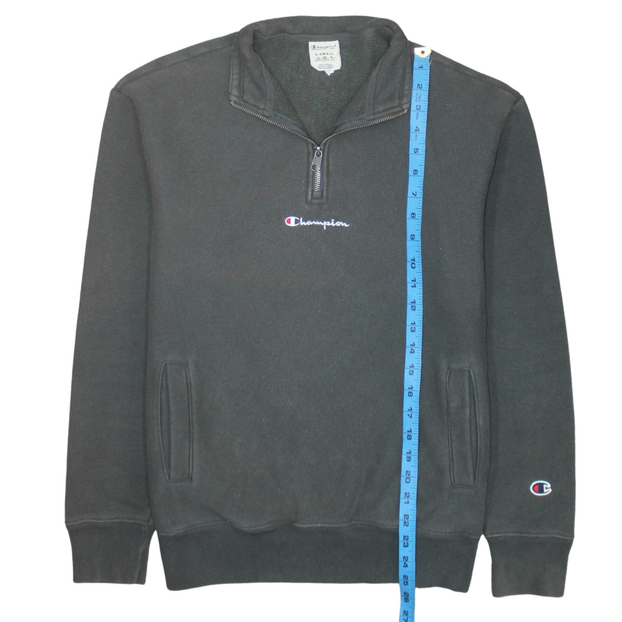 Stay comfortable and stylish with this Champion Women’s Pullover Sweatshirt, a timeless classic built for both casual wear and active days. Crafted from a premium cotton and polyester blend, the midweight fleece fabric provides exceptional warmth and softness, perfect for autumn and winter layering. The sleek black finish makes it effortlessly versatile, ideal for pairing with jeans, joggers, or leggings for a laid-back yet athletic look.Practical in design, this Champion sweatshirt features a 1/4 zip fastening for easy wear and adjustable ventilation, along with a high neck that offers added warmth and comfort in cooler weather. Two side slit pockets give you space to keep your hands warm or store small essentials. The soft inner lining enhances comfort, while ribbed cuffs and hem ensure a secure, flattering fit.Embroidered with the signature Champion logo on the chest and sleeve, it captures the brand’s heritage of sporty streetwear with a modern twist. The regular fit allows freedom of movement, making it suitable for gym sessions, running errands, walking, or cosy lounging at home. This piece combines durability and functionality without compromising on style.In very good used condition with only light signs of previous wear, it remains a durable, high-quality garment ready for everyday use. Whether you’re braving the chilly morning air, heading to training, or simply dressing down for comfort, this pullover Champion sweatshirt has you covered with dependable warmth and understated style. An essential addition for any wardrobe that values comfort, quality, and authentic athletic appeal.