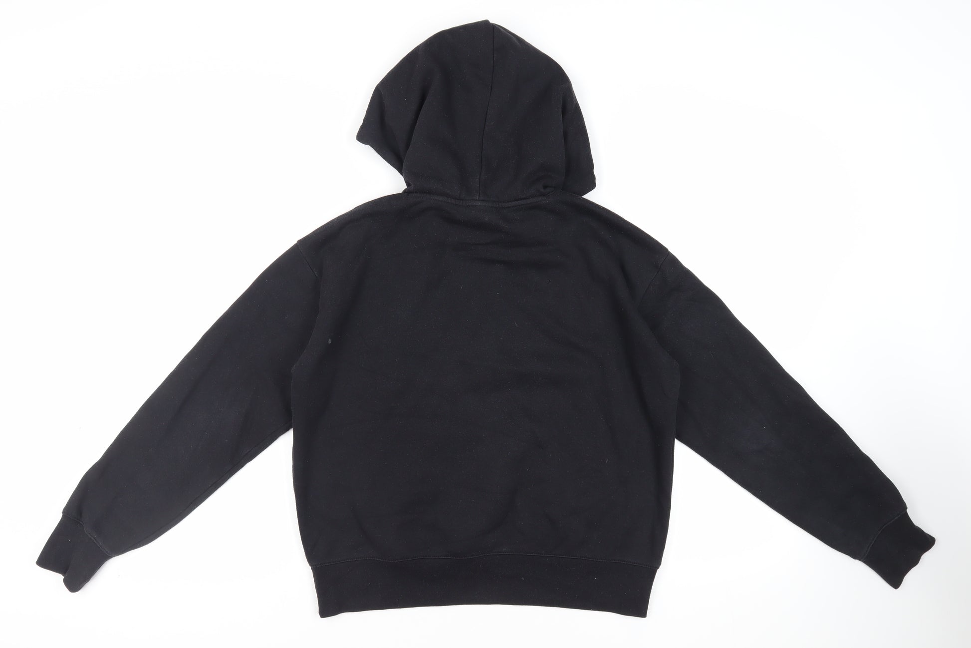 Womens Black Cotton Pullover Hoodie Size M Pullover - Logo Pockets