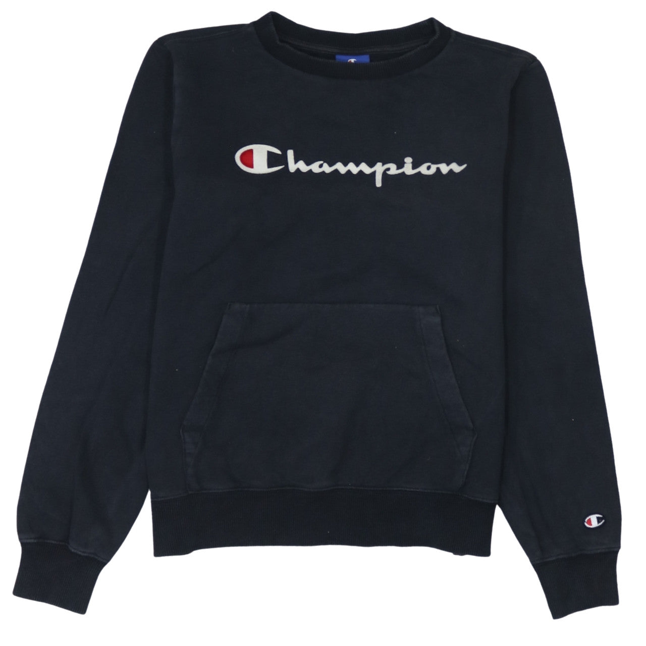 Step up your casual style with this authentic Champion women’s black pullover sweatshirt. Featuring the iconic Champion embroidered script logo across the chest and the signature C logo on the sleeve, this sweatshirt blends sporty comfort with timeless streetwear appeal. Designed in a relaxed yet flattering fit, it’s crafted for warmth and everyday wear. The soft fleece-backed fabric ensures breathable comfort, while the ribbed cuffs and hem provide a snug finish that retains shape through every wash. This piece includes a classic crew neckline and convenient front kangaroo pocket for a laid-back and functional style. Perfect for layering during cooler months or styling solo in transitional weather, this Champion sweatshirt fits seamlessly into any casual wardrobe — from lounging at home to hitting the high street. With its easy-care cotton-blend material and durable craftsmanship, it offers both comfort and longevity. Whether paired with jeans, joggers, or leggings, this sweatshirt adds effortless athletic-inspired style to any outfit. A wardrobe staple for those who appreciate quality and iconic design. Condition is excellent with minor wear visible to the logo area, perfectly wearable and ready to enjoy.