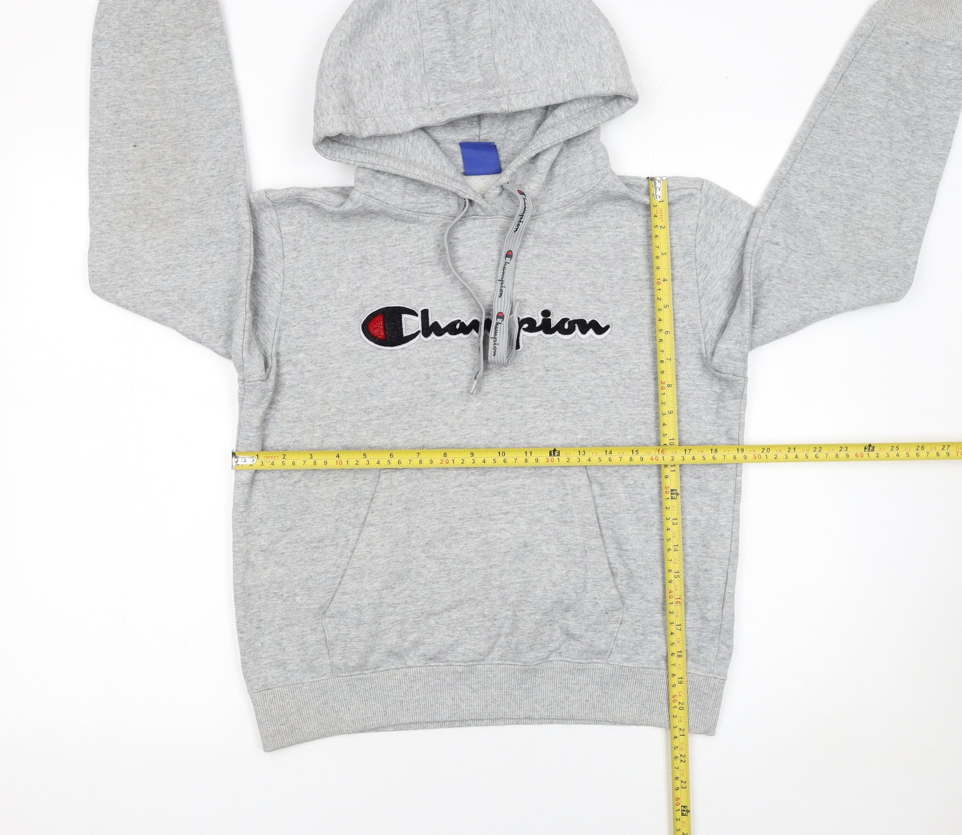 Stay stylish and comfortable with this Champion women's grey pullover hoodie, perfect for casual everyday wear or laid-back weekends. Crafted from a soft cotton blend, this hoodie offers both warmth and breathability for all-season comfort. The medium weight fabric provides just the right balance between cosy insulation and flexibility, making it suitable for layering or wearing on its own. Featuring Champion’s iconic embroidered logo across the chest and a smaller logo on the sleeve, this hoodie adds a sporty yet timeless statement to your wardrobe.The adjustable drawstring hood allows for a custom fit, while the front kangaroo pocket provides practical convenience for carrying essentials or keeping hands warm. Ribbed cuffs and hem ensure a snug and flattering fit that stays in place. The light grey colour scheme complements a variety of outfits, pairing effortlessly with jeans, joggers, or leggings. Ideal for casual outings, gym sessions, or lounging at home, this pullover hoodie combines athletic style with everyday ease.Made from a durable blend of cotton and polyester, it promises long-lasting quality and easy maintenance. The Champion brand is known for classic sportswear constructed with comfort and durability in mind, and this hoodie is no exception. Despite showing light signs of previous wear, such as minor discolouration on the sleeve, it remains in excellent overall condition. Whether you’re heading to the gym, relaxing at home, or running errands, this hoodie delivers comfort, iconic branding, and effortless style.A staple piece for any wardrobe, this Champion hoodie captures the perfect mix of streetwear fashion and athletic leisure. Add it to your everyday rotation for reliable comfort, dependable warmth, and a touch of retro sports heritage.