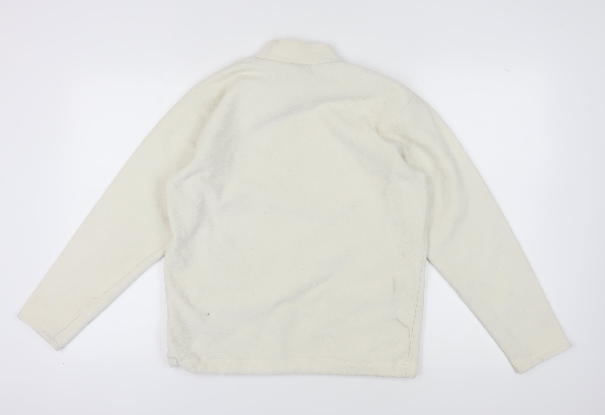 Elevate your casual wardrobe with this Champion Women's Pullover Sweatshirt. Crafted from 100% polyester fleece, this sweatshirt offers warmth and moisture-wicking properties, making it perfect for the autumn and winter months. The ivory colour adds a touch of elegance, while the regular fit ensures comfortable wear for daily activities. Featuring a mock neck and long sleeves, this pullover design provides a classic and timeless look. Ideal for casual occasions, this sweatshirt is machine washable for easy care. Despite some minor marks, the overall condition remains good. Suitable for women seeking comfort without compromising on style. Don't miss out on this versatile piece that seamlessly blends functionality with fashion.