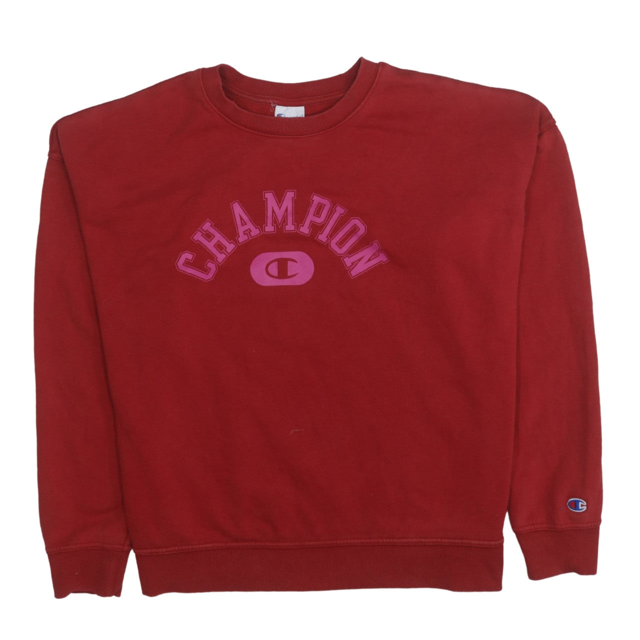Step up your casual wardrobe with this effortlessly cool Champion women’s red sweatshirt, designed for both comfort and timeless style. Crafted in a rich crimson shade with bold pink branding across the chest, it delivers the sporty, laid-back aesthetic Champion is renowned for. The soft fleece interior ensures warmth and comfort, making it perfect for layering through the autumn and winter months, while the durable cotton-blend fabric keeps it breathable enough for year-round wear. Featuring a classic crew neckline, long sleeves, and ribbed hem and cuffs, this sweatshirt offers a relaxed fit that pairs beautifully with jeans, leggings, or joggers. Whether you’re heading to the gym, running errands, or just lounging at home, this piece combines function and fashion effortlessly. The front logo adds a playful pop of contrast, making it ideal for fans of athletic-inspired casualwear. With its iconic design, easy-care fabric, and versatile colour, this Champion long sleeve pullover remains a must-have staple for those who value everyday comfort with an edge. Its excellent pre-loved condition ensures great value while maintaining the high quality associated with the Champion brand.
