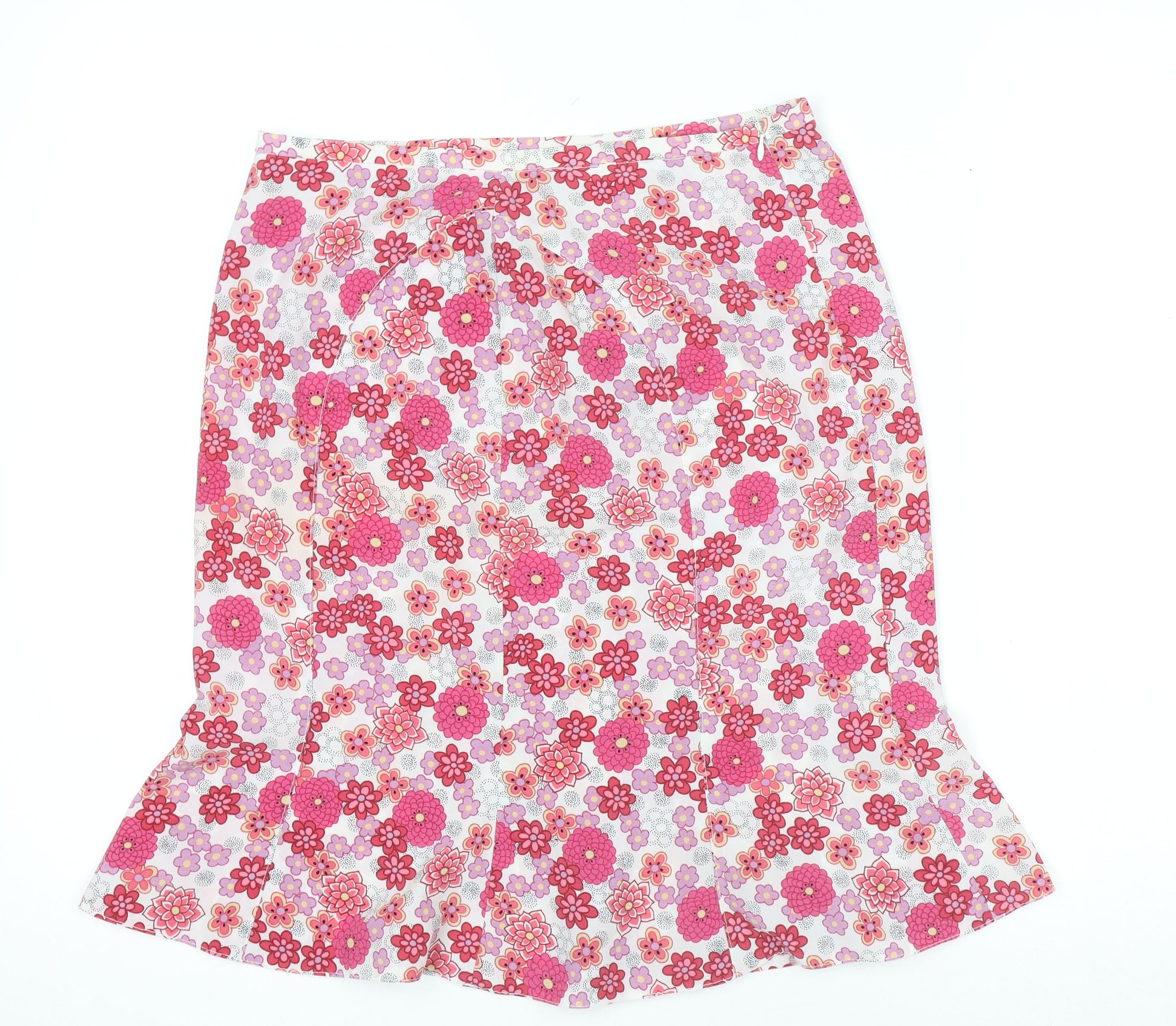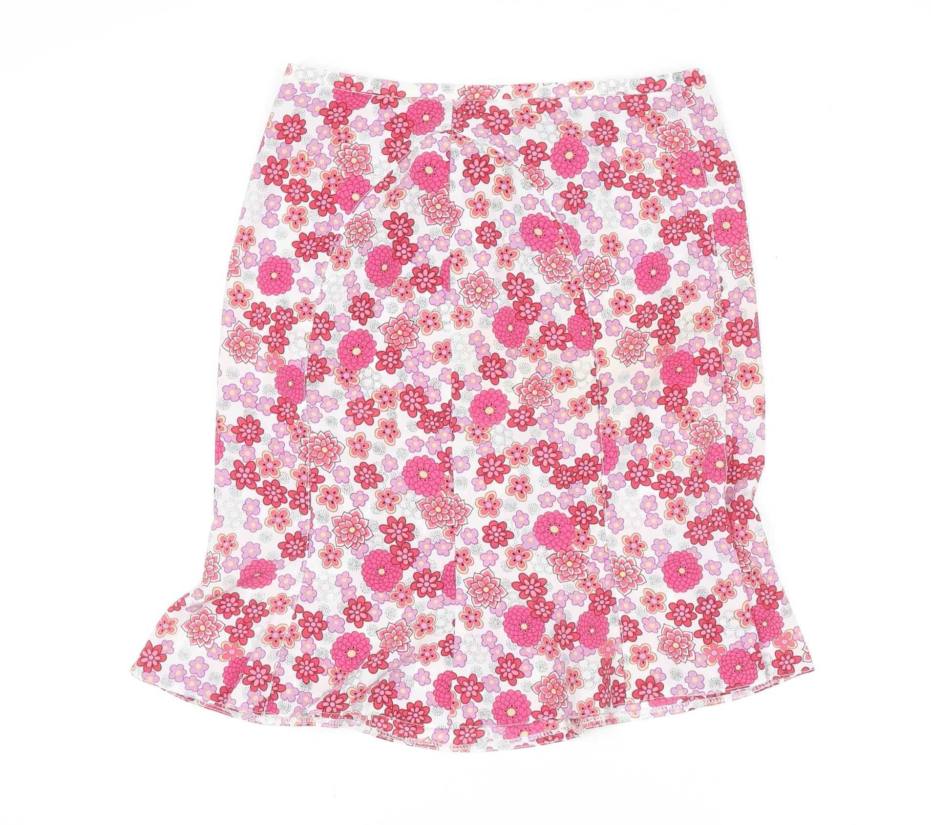 Womens Pink Floral A-Line Cotton Skirt Size 12