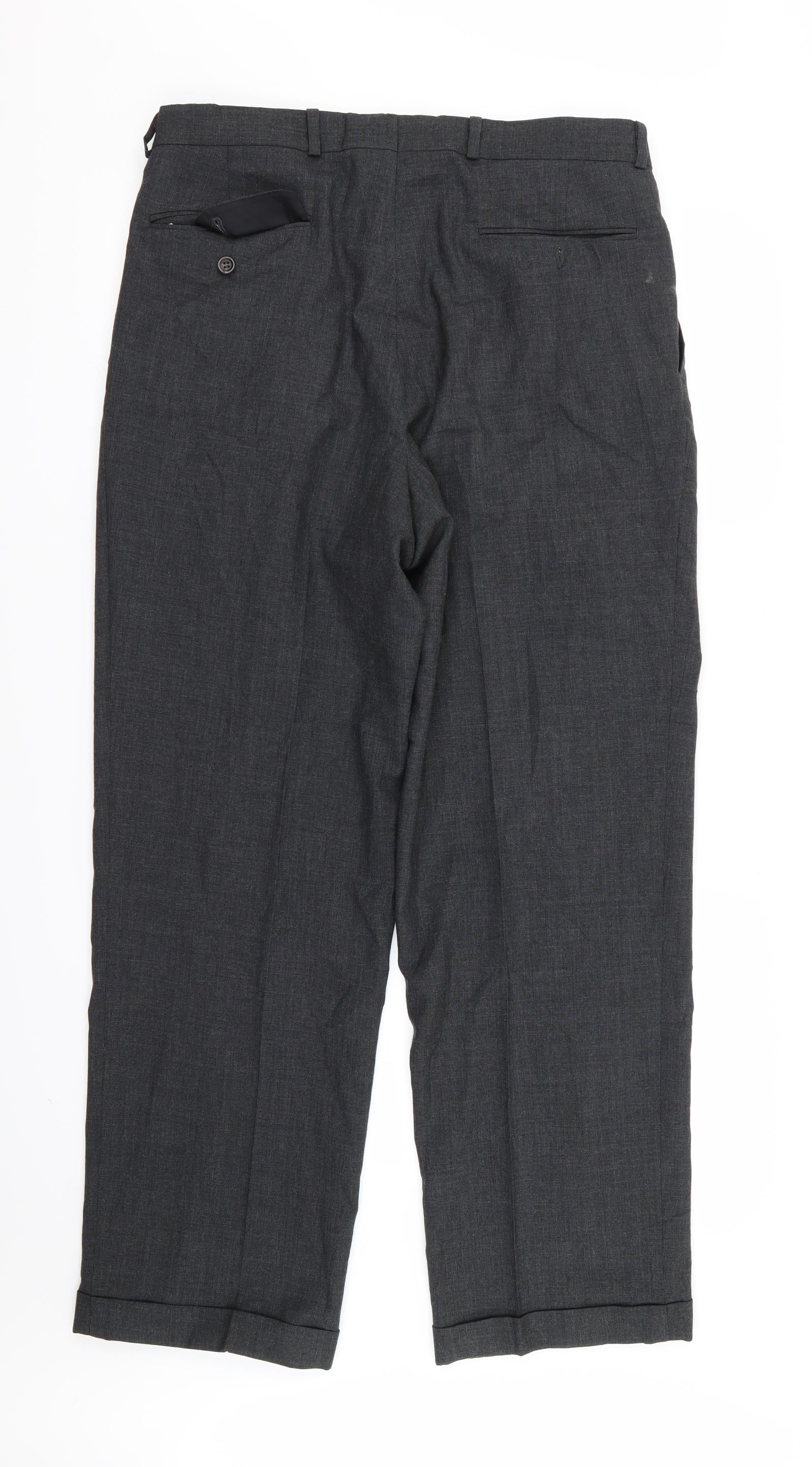 Montague Burton Men’s Grey Wool-Blend Formal Trousers 32W Short