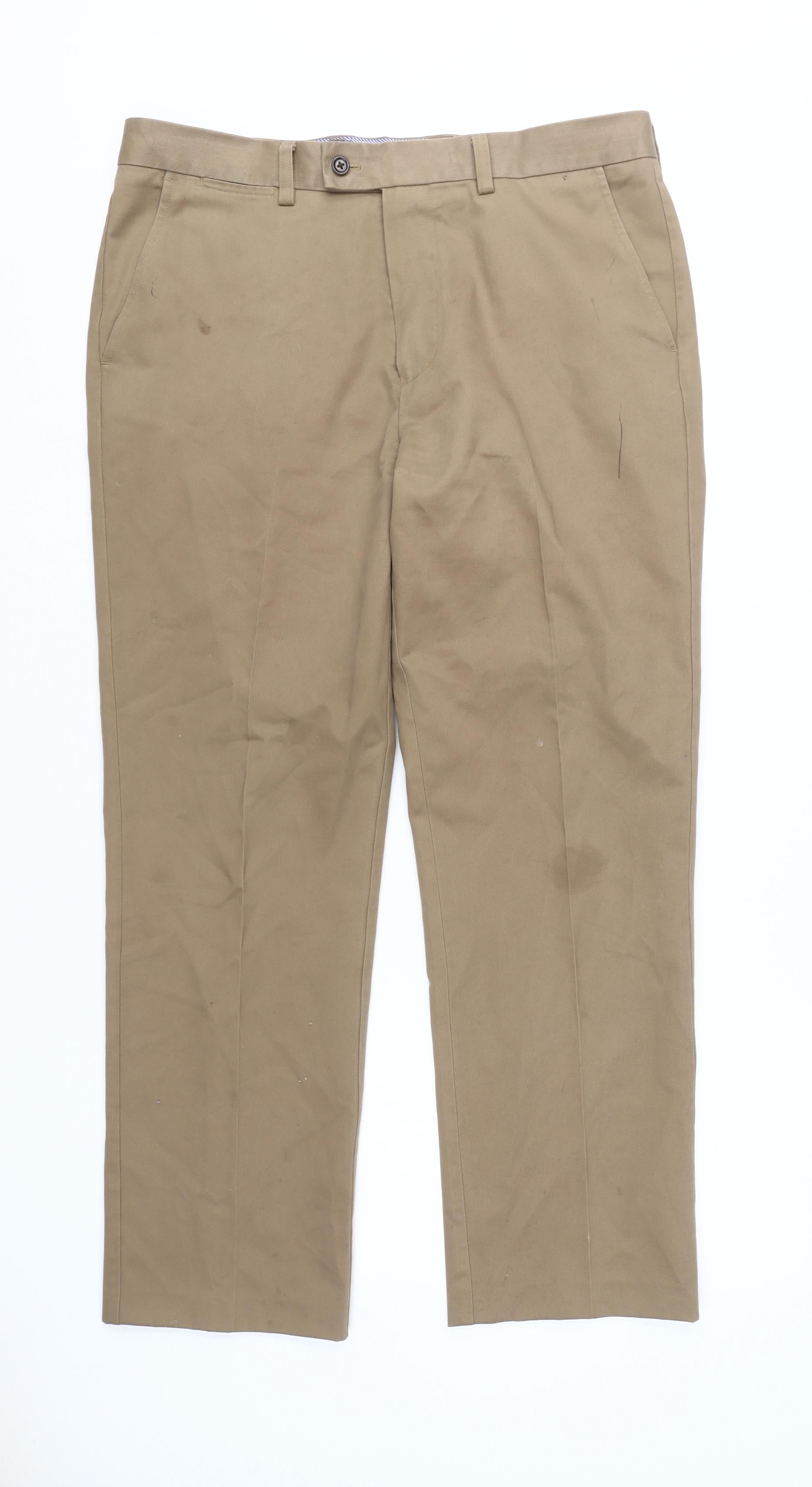 Upgrade your casual wardrobe with these sophisticated Charles Tyrwhitt Men's Chino Trousers. Tailored for a classic fit from 100% Cotton, these trousers offer both comfort and style. Their versatile beige colour allows for easy pairing with various tops, making them a staple for any occasion. The trousers feature a button closure and are designed in a straight leg style, adding a touch of elegance to your look. Equipped with slash pockets, they provide convenience without compromising on style. Perfect for both autumn and spring, these chinos adapt seamlessly to your wardrobe transitions. Despite some slight marks, their overall condition is good, ensuring you look presentable effortlessly. Ideal for casual outings or as smart casual attire, these chinos are machine washable, allowing easy maintenance. Redefine your fashion with Charles Tyrwhitt’s signature style evident in these well-crafted trousers.