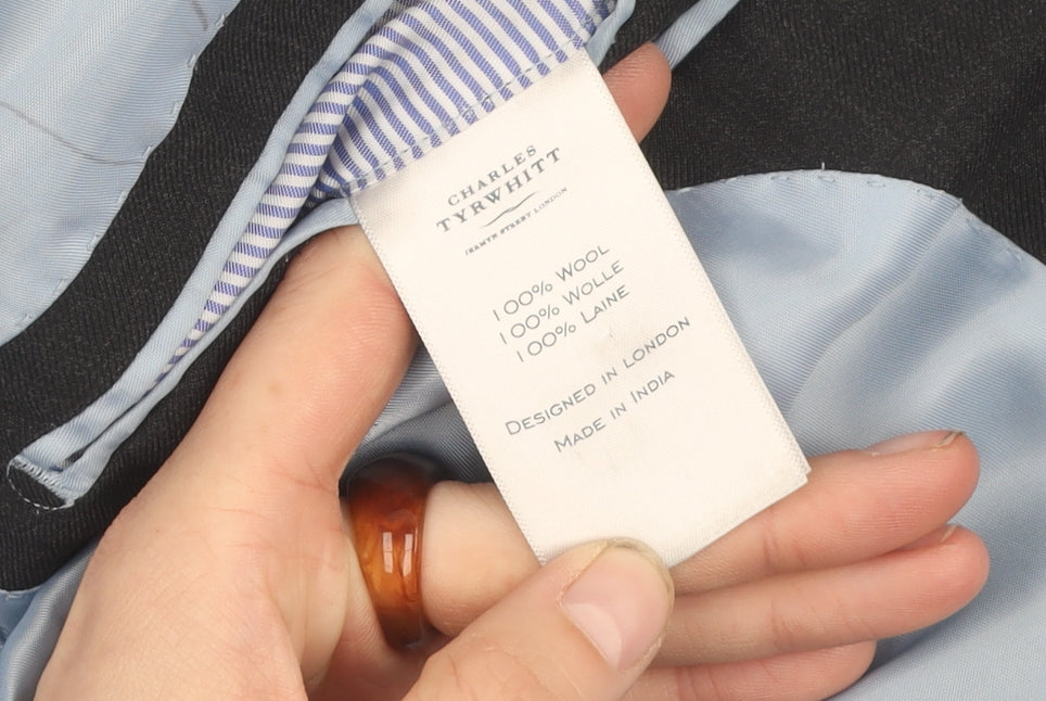 Elevate your style with this sophisticated Charles Tyrwhitt men's blazer. Expertly tailored from 100% wool, this black blazer is the epitome of classic elegance. Sized at 36 Regular, it features a single-breasted design with a two-button front closure and a stylish notch lapel. The inner lining is made from high-quality polyester, ensuring comfort throughout the day. This blazer is perfect for formal occasions, providing a sleek and polished appearance. The four-button detailing on the sleeve cuff and the double-vented back add a touch of refinement. Its regular fit and timeless black colour make it a versatile piece for any wardrobe. Whether you're attending a business meeting or a special event, this blazer will ensure you look sharp and confident. Complete with inner pockets for functionality and crafted with attention to detail, it's an essential piece for any fashion-forward gentleman. Dry clean only to maintain its pristine condition. Opt for this charming blazer to make a lasting impression.