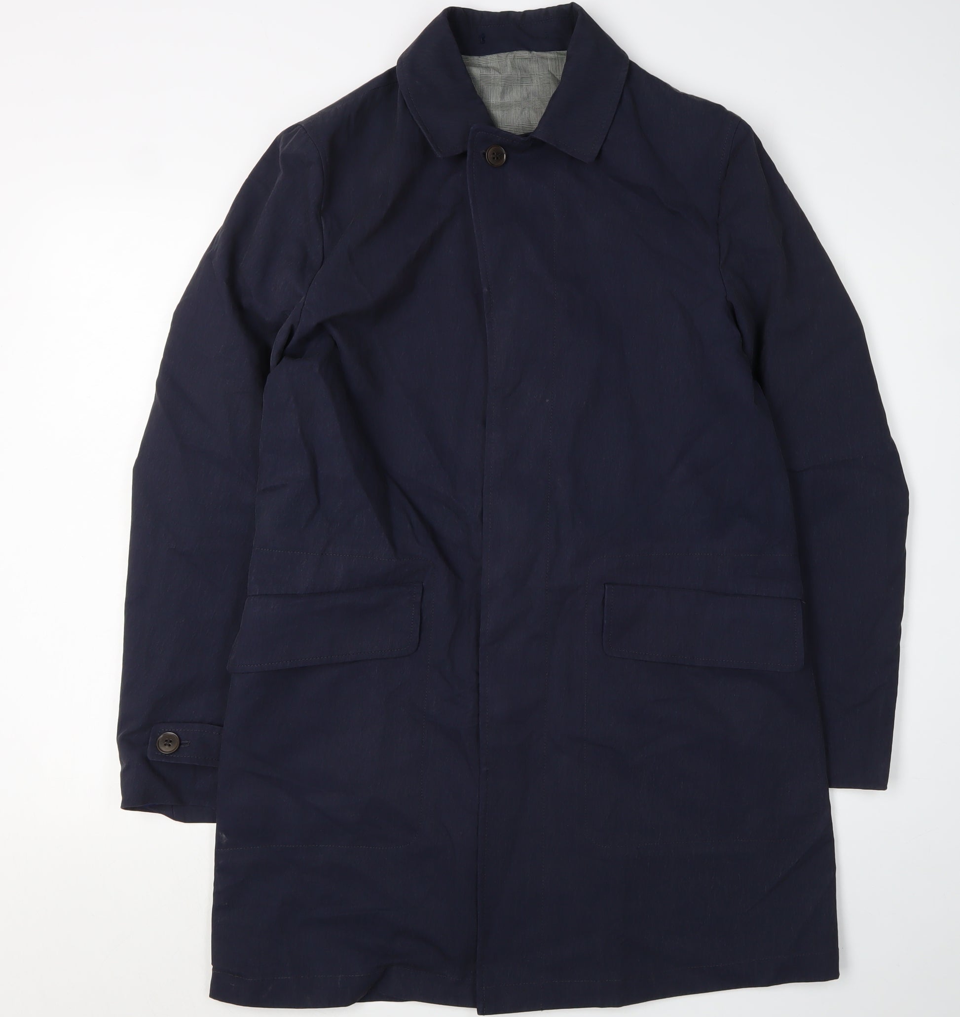 Step into a realm of timeless elegance with this Charles Tyrwhitt men's overcoat. Crafted in a rich blue hue, this coat stands as a testament to exquisite craftsmanship. Designed for the discerning man, it offers a blend of classic and contemporary style suitable for both business and casual occasions. The coat is made from a balanced combination of 53% cotton and 47% polyamide, promising both durability and comfort. Its structured fit is complemented by a stylish spread collar and accented with a classic button closure, enhancing its traditional appeal. The coat's long length ensures that it remains a versatile piece, perfect for transitioning through autumn and spring. With features such as a twill fabric type and a subtle check pattern lining, it brings a touch of sophistication to any ensemble. Whether you're heading to the office or out for a casual outing, this coat offers the perfect mix of style and practicality. With its immaculate new condition, complete with original tags, this overcoat is an invaluable addition to any modern wardrobe. Step into sophistication and make a lasting impression with this classic Charles Tyrwhitt coat.