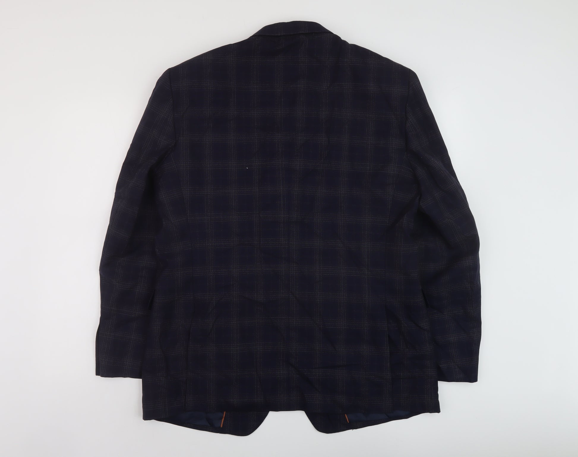 Mens Blue Plaid Wool Jacket Suit Jacket Size 44 Regular