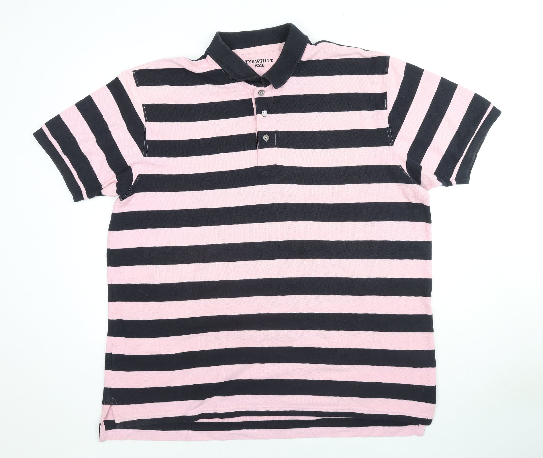 Mens Pink Striped Cotton Polo Size 2XL Collared Pullover