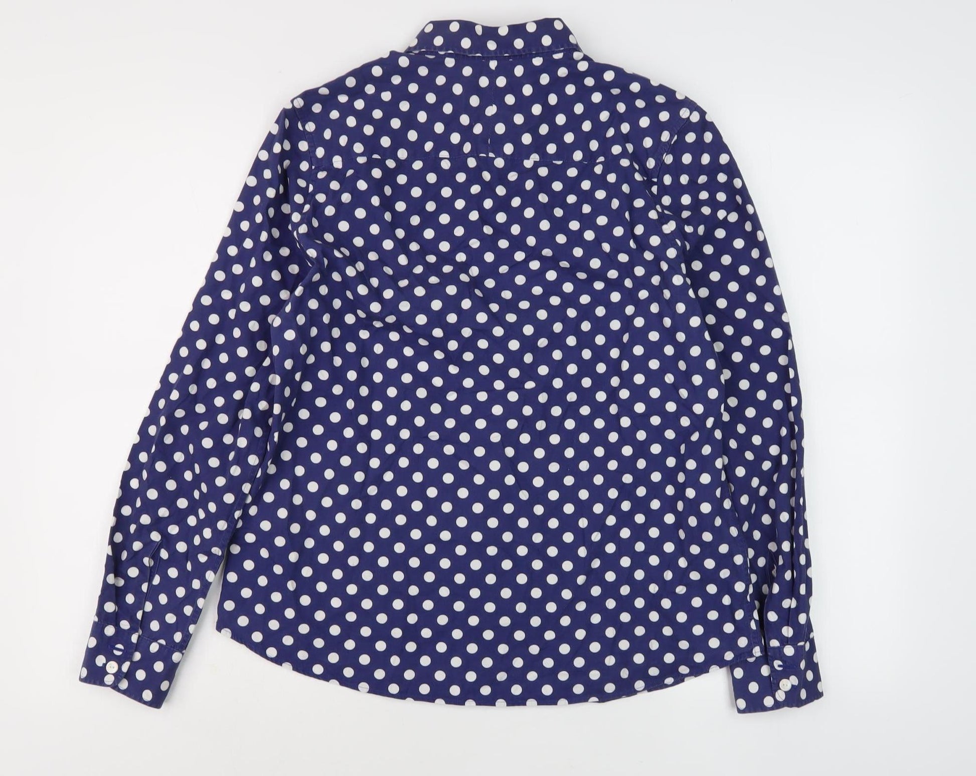 Women's Blue Polka Dot Button-Up Shirt, Size 12