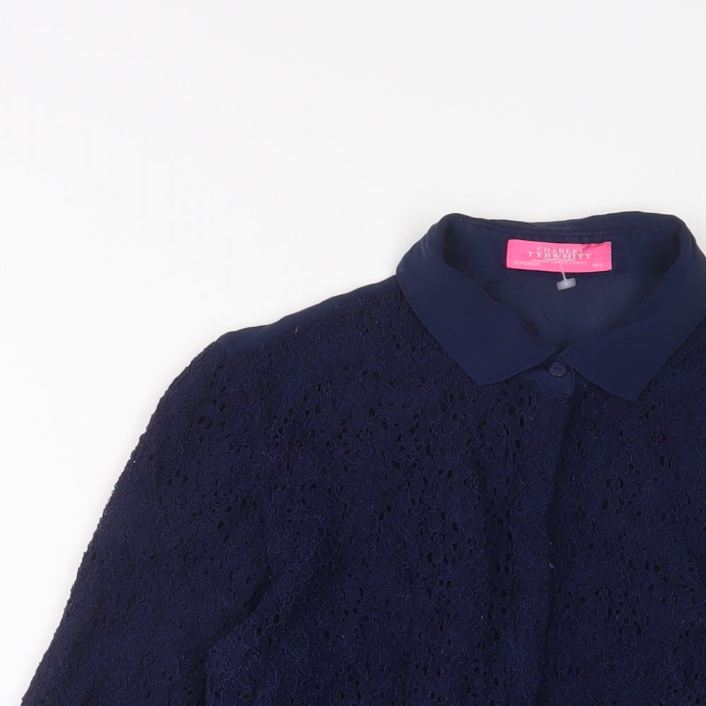 Womens Blue Viscose Basic Button-Up Size 12 Collared