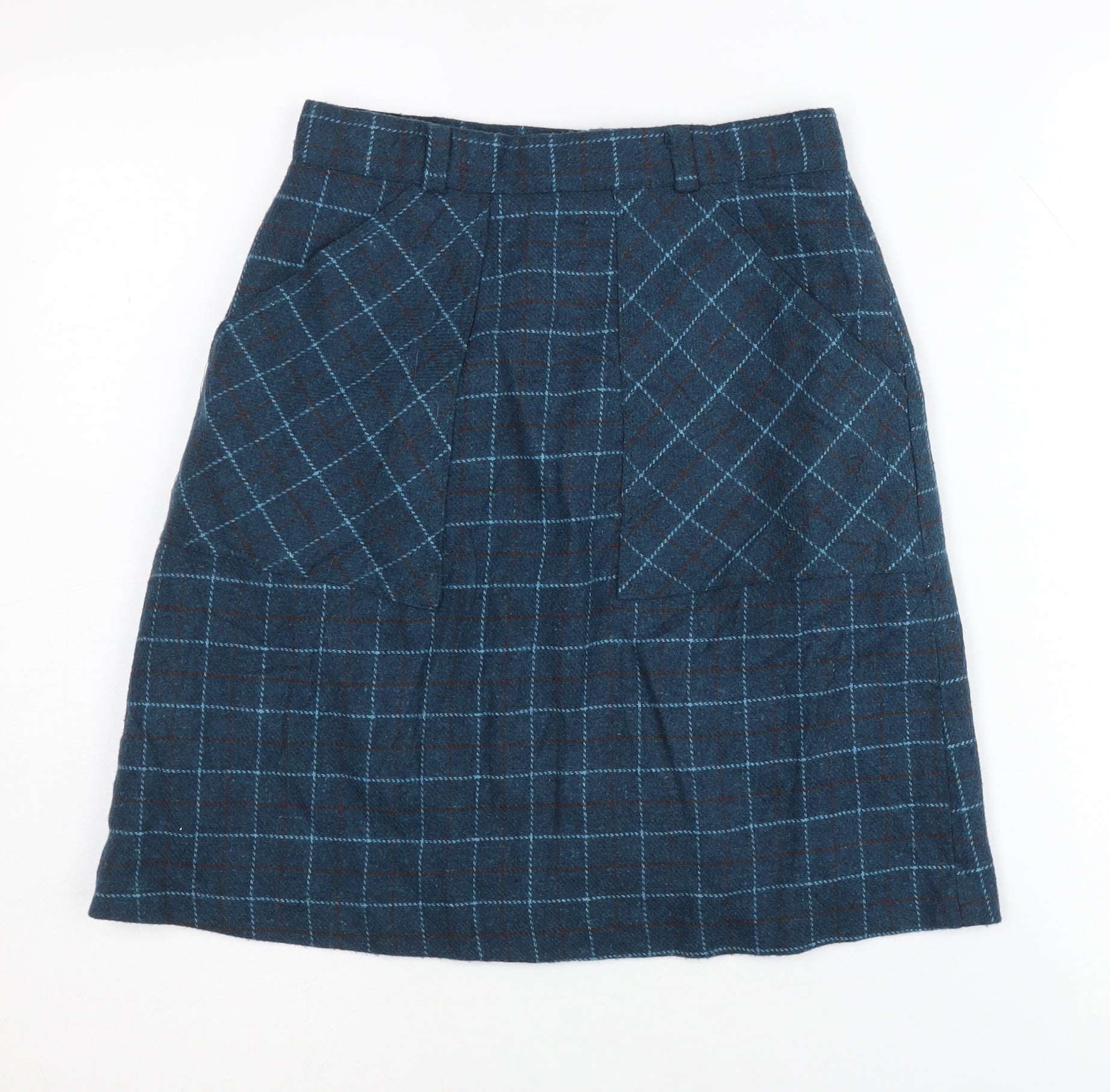 This stylish blue check skirt by Charlotte Halton is the perfect blend of comfort and sophistication, ideal for a variety of casual occasions. Crafted for women, this skirt stands out with its classic A-Line design, providing a flattering silhouette for a size 10 figure. The skirt incorporates practical features such as pockets and a button accent, adding both utility and charm to its aesthetic appeal.Made from a high-quality blend of materials including 35% Polyester, 32% Wool, and 26% Acrylic, this skirt promises durability and comfort, ensuring it remains a staple in your wardrobe for many seasons. The polyester lining further enhances comfort, making it suitable for all-season wear. The check pattern adds a touch of timeless elegance, making it versatile enough to pair with various tops and jackets.The mid-rise fit and regular size ensure that the skirt sits just right, flattering the waistline without compromising on comfort. With machine washable care, maintaining the pristine condition of this skirt is straightforward. Despite being pre-loved, it remains in excellent condition, showing no visible signs of wear or damage, making it a valuable addition to any wardrobe.Whether paired with a casual blouse for a relaxed day out or dressed up with a smart shirt for a more formal look, this Charlotte Halton skirt offers endless styling possibilities. Experience the perfect blend of classic style and modern comfort with this must-have wardrobe piece.