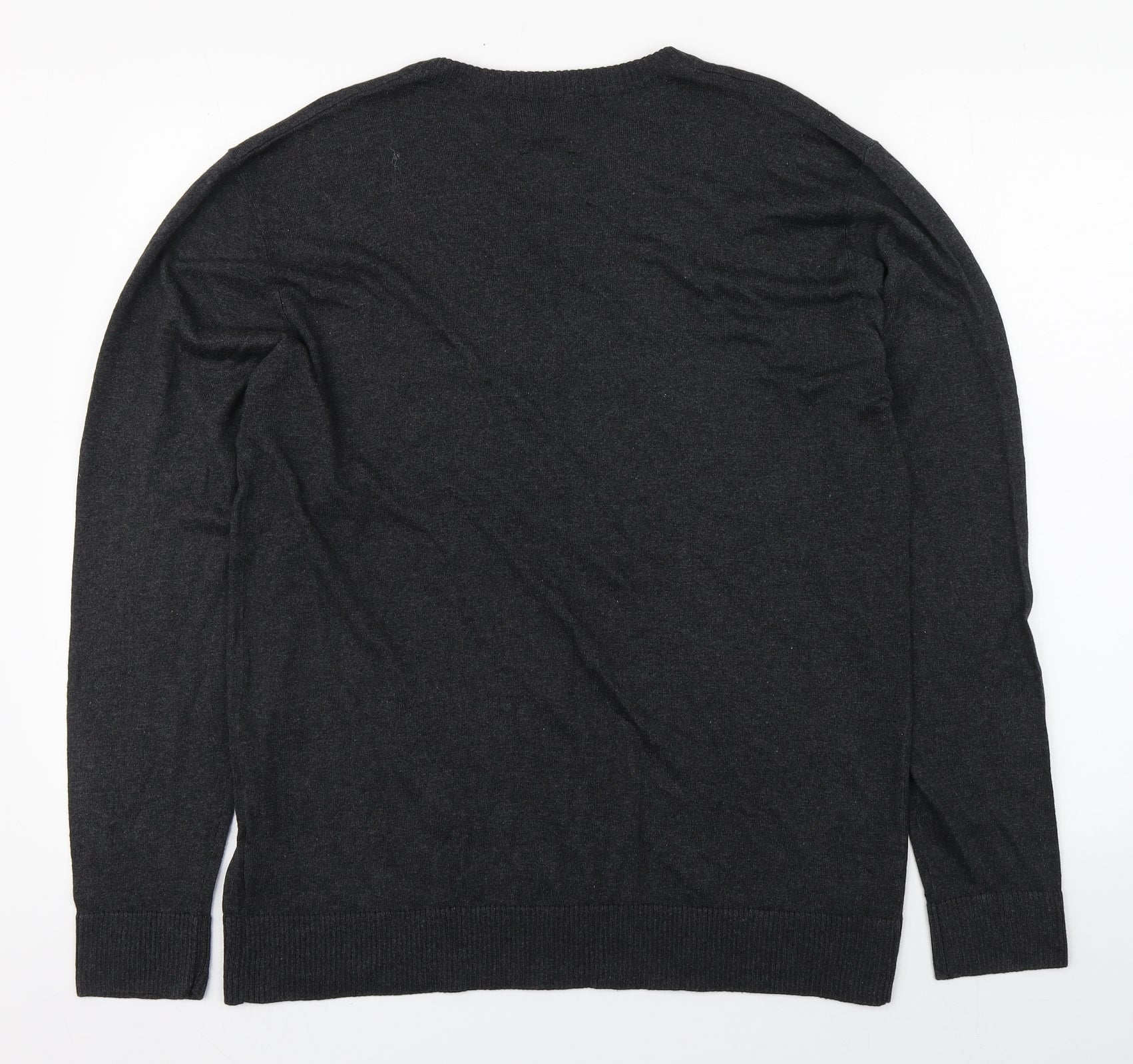 Mens Grey V-Neck Silk Pullover Jumper Size L