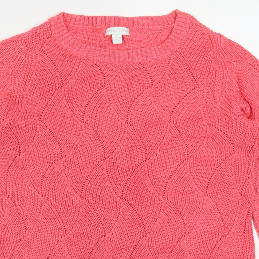 Womens Pink Round Neck Cotton Pullover Jumper Size S