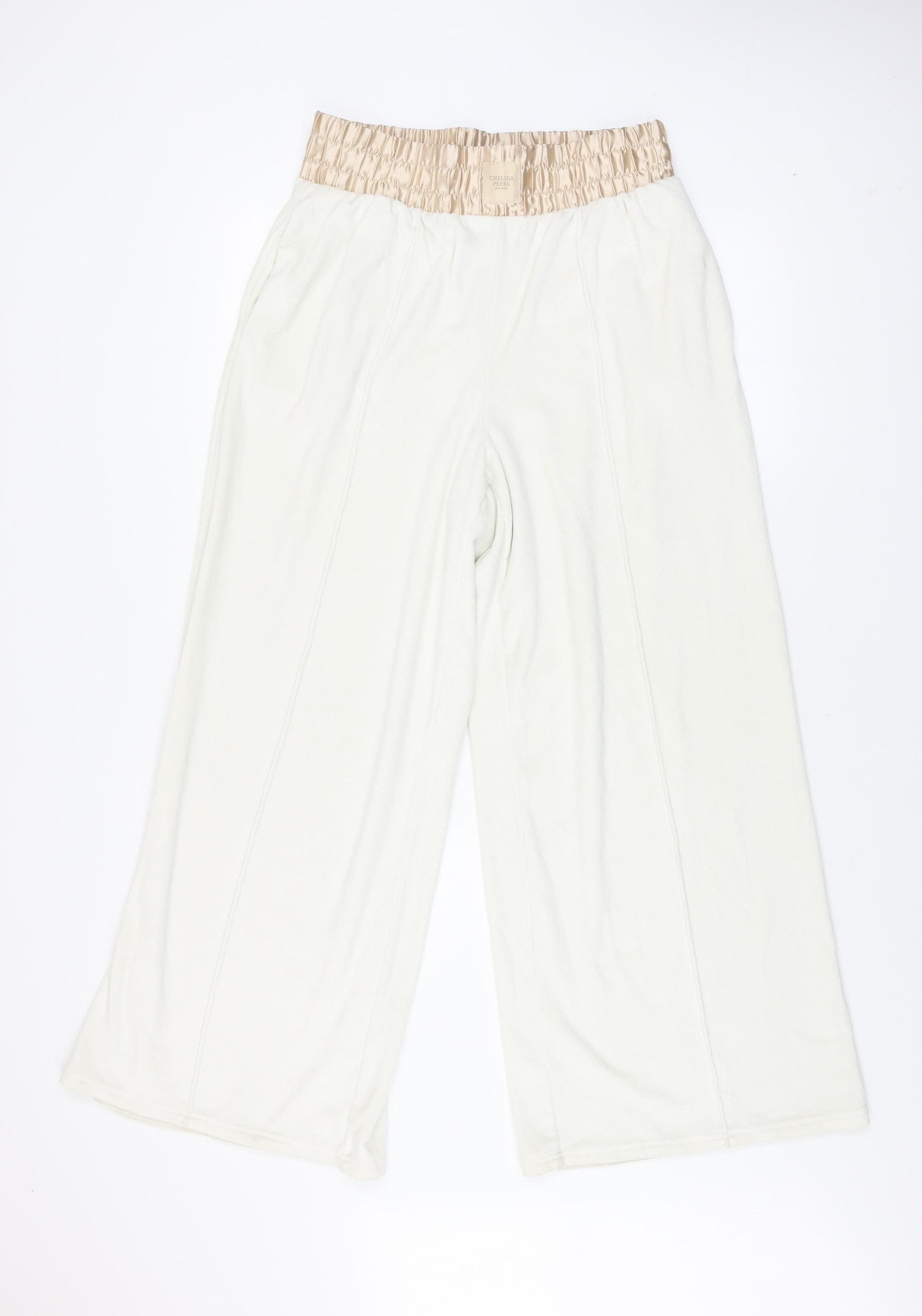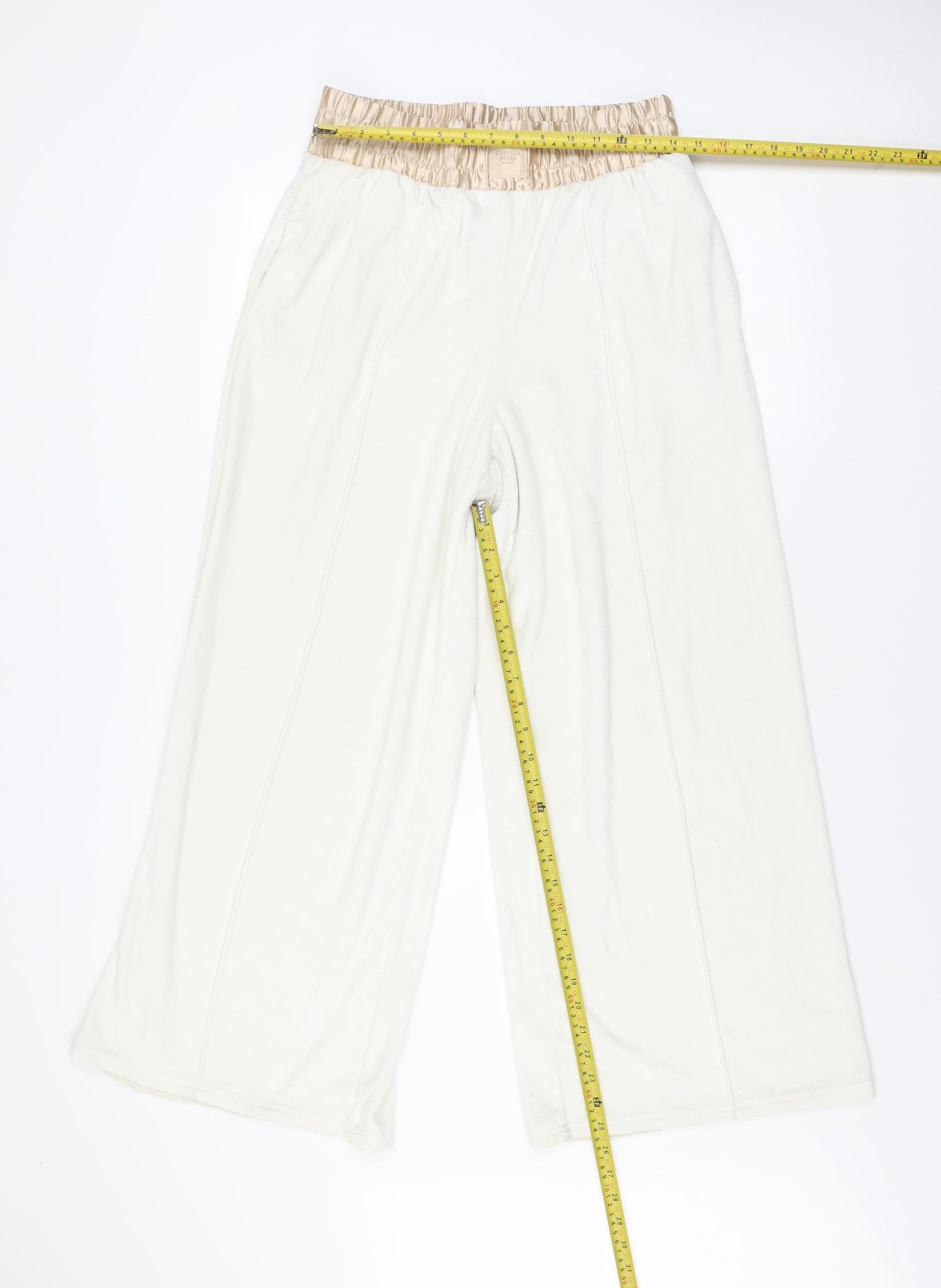 Women Ivory Wide-Leg Fleece Loungewear Trousers Size 12