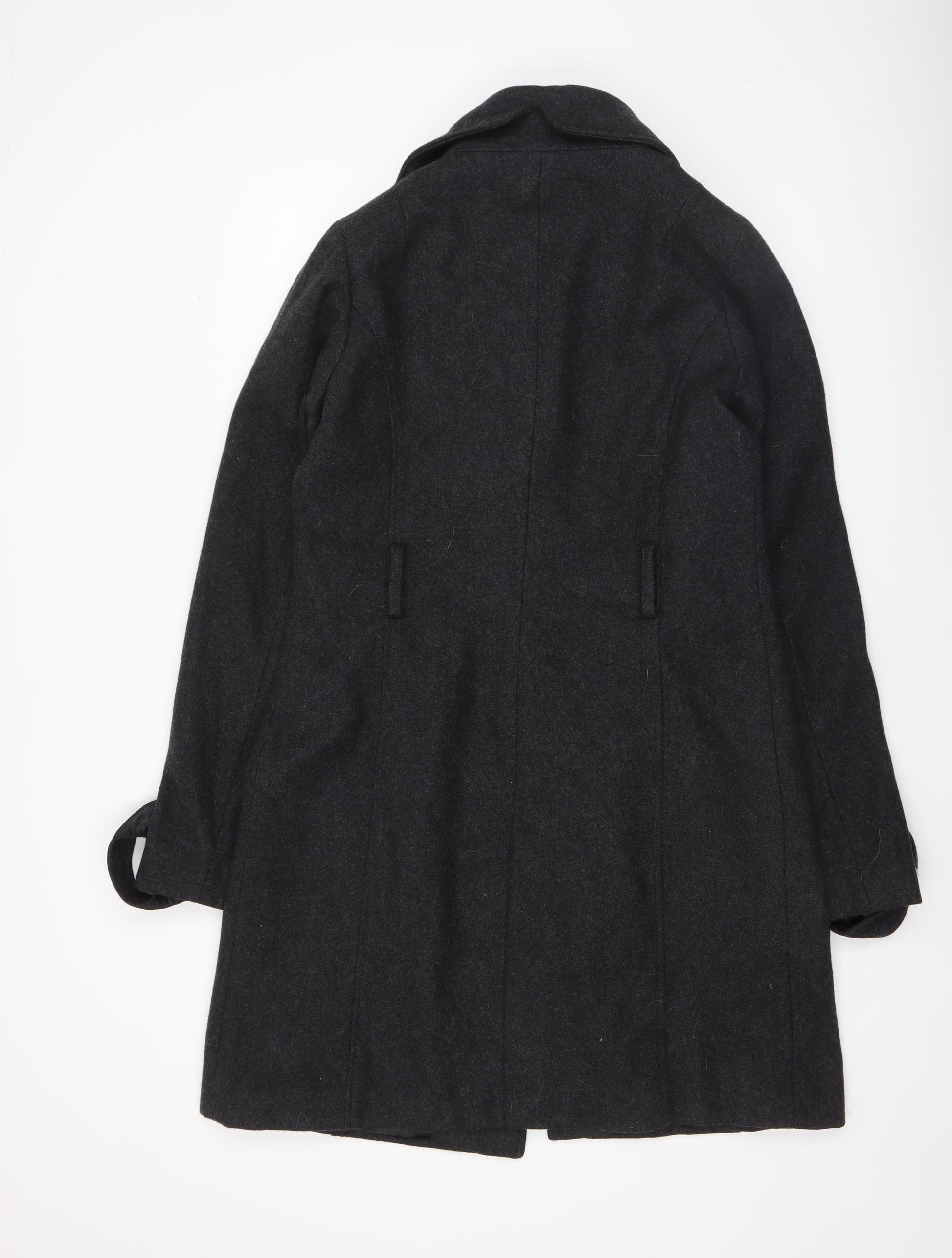 Women's Black Wool Blend Mid-Length Overcoat Size 14