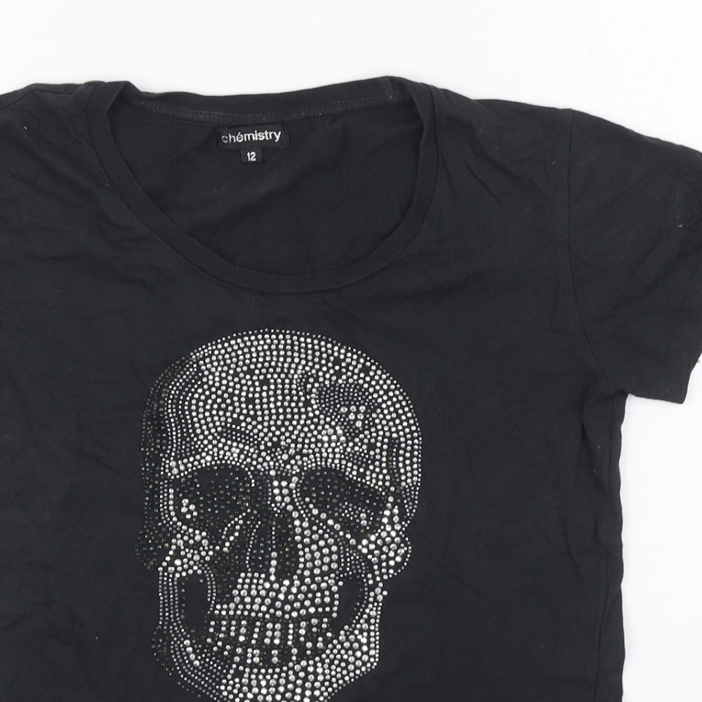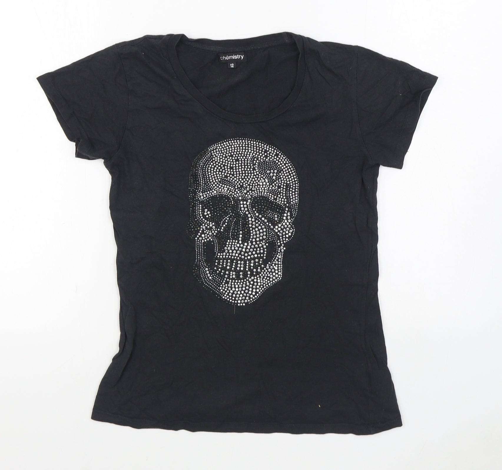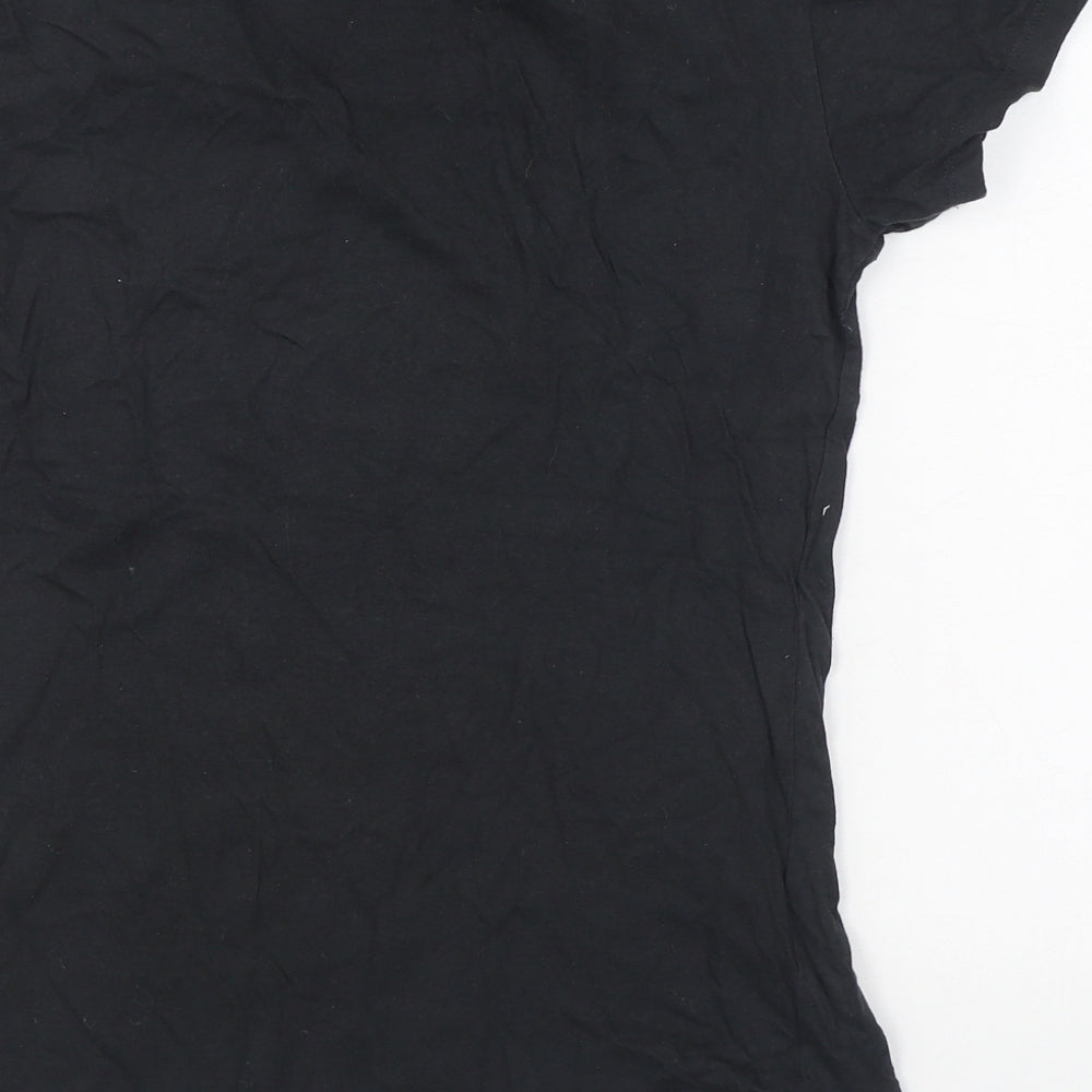 Womens Black 100% Cotton Basic T-Shirt Size 12 Scoop Neck