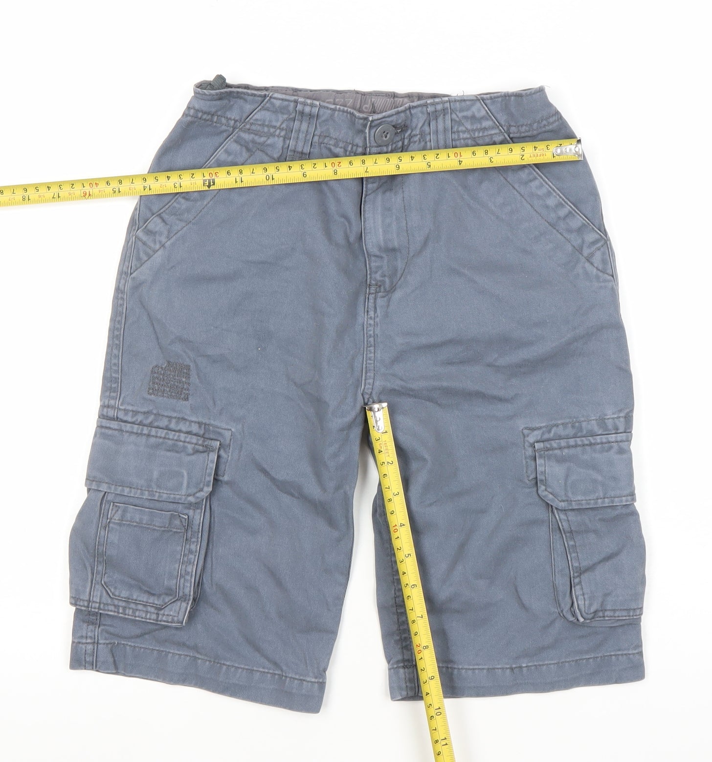 These Cherokee boys’ grey cargo shorts are a comfortable and versatile choice for everyday wear. Made from 100% cotton twill fabric, they’re soft, breathable, and durable enough to keep up with energetic days outdoors or relaxed weekends. The casual grey tone pairs perfectly with T-shirts or polos, making these shorts ideal for summer adventures and casual layering. Designed with a regular fit, these shorts offer a mid-rise cut that sits comfortably at the waist, featuring a button and zip fastening for ease of wear. The adjustable and partially elasticated waistband ensures a great fit as your child grows. Practicality meets style with multiple pockets – two front slant pockets, two cargo pockets on the sides, and two flap pockets at the back – perfect for storing small essentials like keys, coins, or adventure treasures on the go. The lightweight cotton design provides comfort and breathability, while the durable twill weave maintains its shape and colour wash after wash. These shorts are machine washable for fuss-free care, making them a convenient choice for parents and a comfortable everyday favourite for boys. Though pre-owned, these shorts remain in very good condition with only light wear and minimal creasing visible, showing no stains, holes, or significant signs of damage. Perfect for school holidays, park play, summer trips, or everyday casual outfits, these Cherokee cargo shorts bring together a timeless design and practical wearability. Whether worn with trainers or sandals, they are an effortless addition to any young boy’s wardrobe. With their reliable quality and comfortable fit, these shorts provide exceptional value and style for everyday seasonal wear.