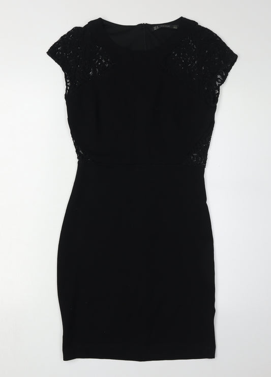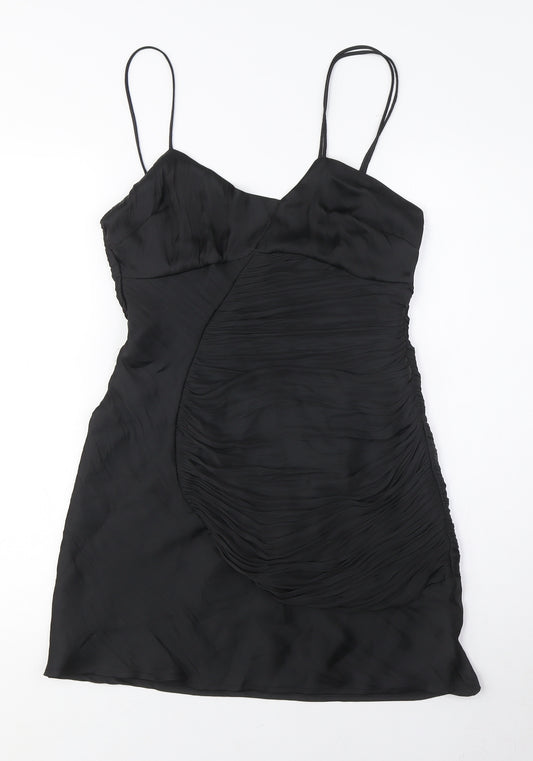 Zara Womens Black Polyester Slip Dress Size M Square Neck Zip