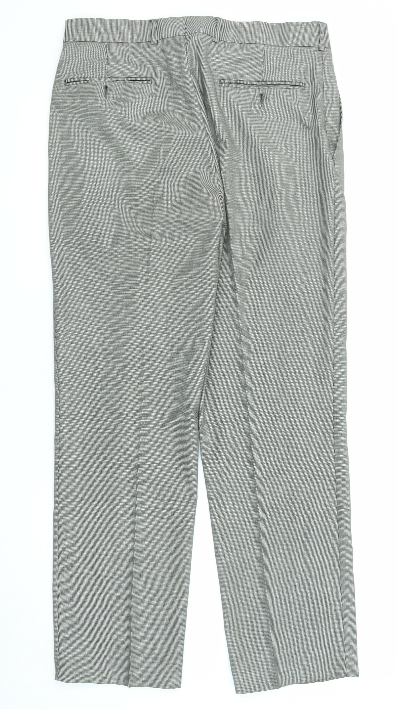 Mens Grey Wool Trousers Size 34 in L32 in Regular Zip