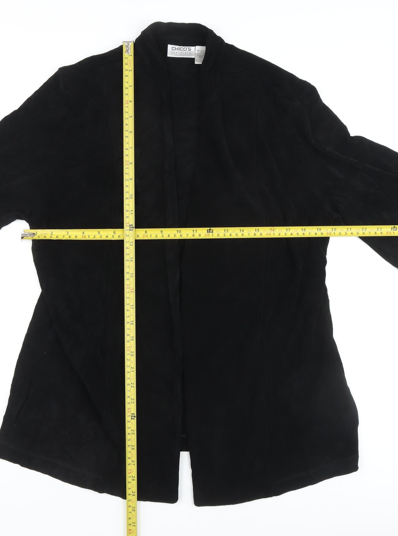 Explore the elegant charm of this Chico's Women's Black Jacket. Designed with sophistication and comfort in mind, this jacket boasts a rich black hue that complements any wardrobe. Made primarily from acetate, its material provides a soft touch and a sleek finish. This piece perfectly blends classic style with modern versatility, making it a staple for any occasion. Whether you're heading to a business meeting or a casual evening outing, this jacket ensures you stand out gracefully. With its thoughtful craftsmanship, slight wear only adds to its unique appeal, promising long-term wearability and style. A must-have addition to your collection, offering a touch of sophistication wherever you go.