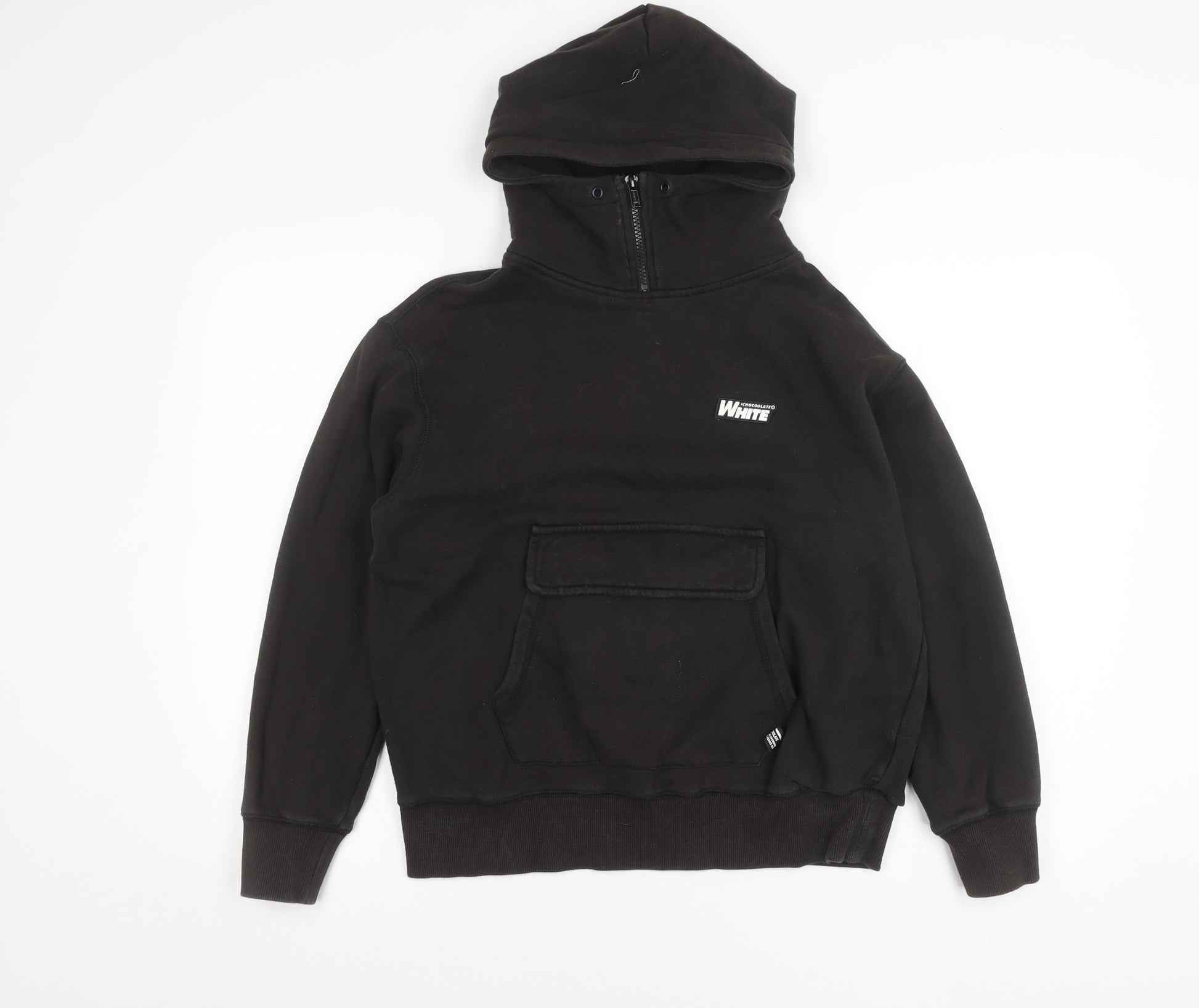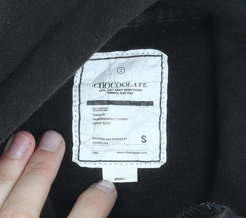 Upgrade your wardrobe with this stylish Chocolate hoodie, crafted for both comfort and urban flair. Designed in sleek black, this men’s pullover hoodie is a versatile piece suitable for casual outings, relaxed weekends, or layering during the cooler months. Made from a quality cotton and polyester blend, the fleece fabric provides lasting comfort while maintaining durability and breathability. The fabric composition of 80% cotton and 20% polyester ensures a soft touch with enough structure to keep its shape over repeated wears.The hoodie features a functional half-zip closure at the neckline, offering adjustable coverage and a contemporary twist on the classic pullover style. A spacious kangaroo-style pocket with flap detailing adds practicality and a distinctive edge, ideal for carrying essentials or keeping hands warm. Ribbed cuffs and hem contribute to a snug fit, while the hood adds extra protection during chillier days. Printed accents stand out with a bold graphic design on the back and logo branding on the chest area, making this hoodie a standout piece for lovers of streetwear fashion.Tailored in a regular fit and presented in size Small, it is designed to suit UK men’s Small sizing with a long sleeve construction, ensuring a comfortable yet structured wear. Perfect for autumn and winter seasons, this hoodie is machine washable, making it an easy-care and staple item for your casual wardrobe rotation. Themes of graphic print and music-inspired artwork elevate its cool, modern aesthetic, appealing to those who enjoy expressive and stylish clothing.In very good used condition with light wear and mild fading, this hoodie has been well looked after and continues to maintain its character and quality. The item represents an affordable and practical choice without compromising style. Perfect for pairing with jeans, joggers, or layered under a jacket, this Chocolate hoodie is ready to become your new everyday favourite.An excellent pick for those who value unique streetwear with both comfort and edge. Secure this versatile hoodie today and add an essential piece to your wardrobe that reflects creativity, music influence, and urban style.