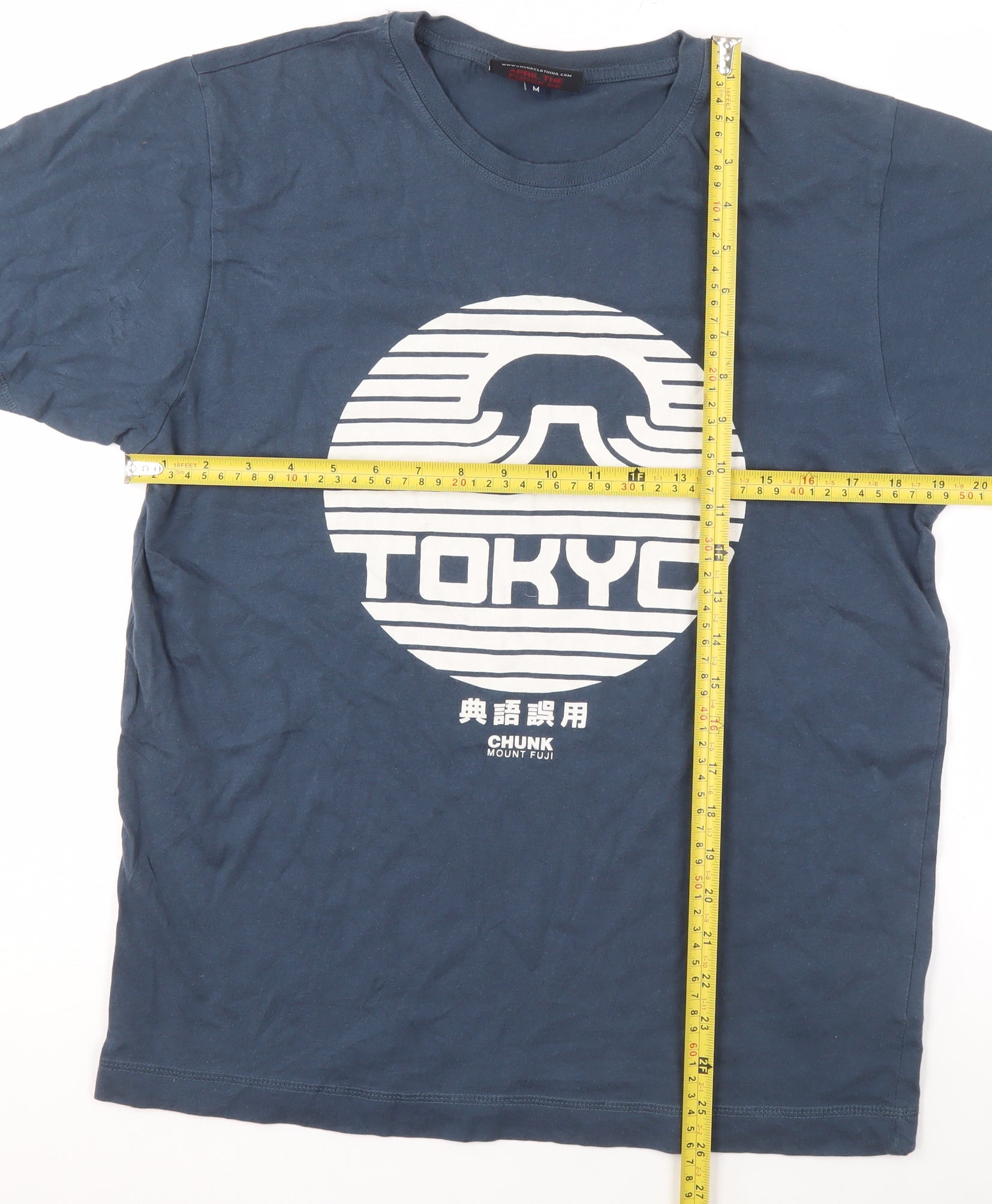 Men’s Blue Tokyo Graphic T-Shirt Size M Cotton Crew Neck