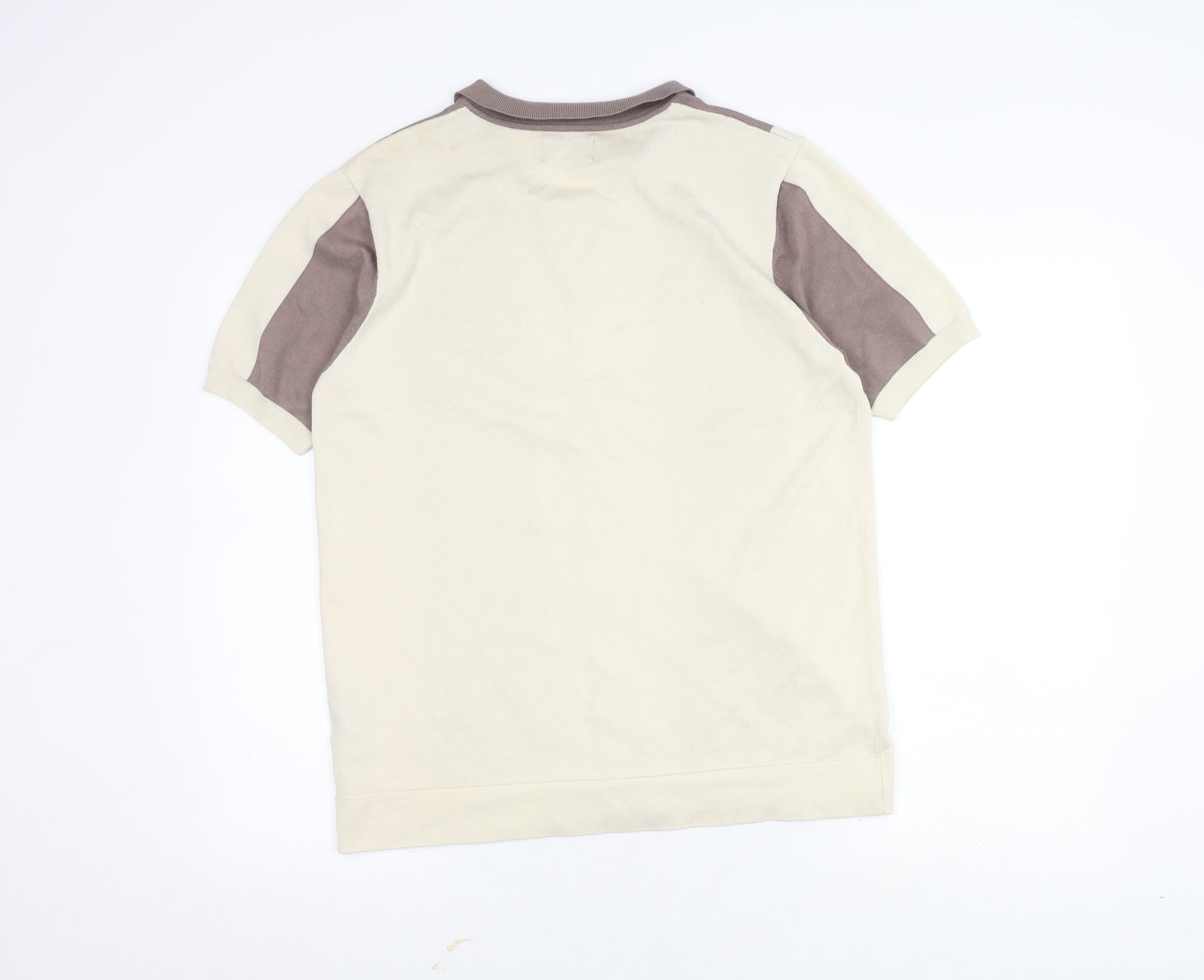 Marks and Spencer North Coast Beige Cotton Short Sleeve Polo Shirt Men’s L