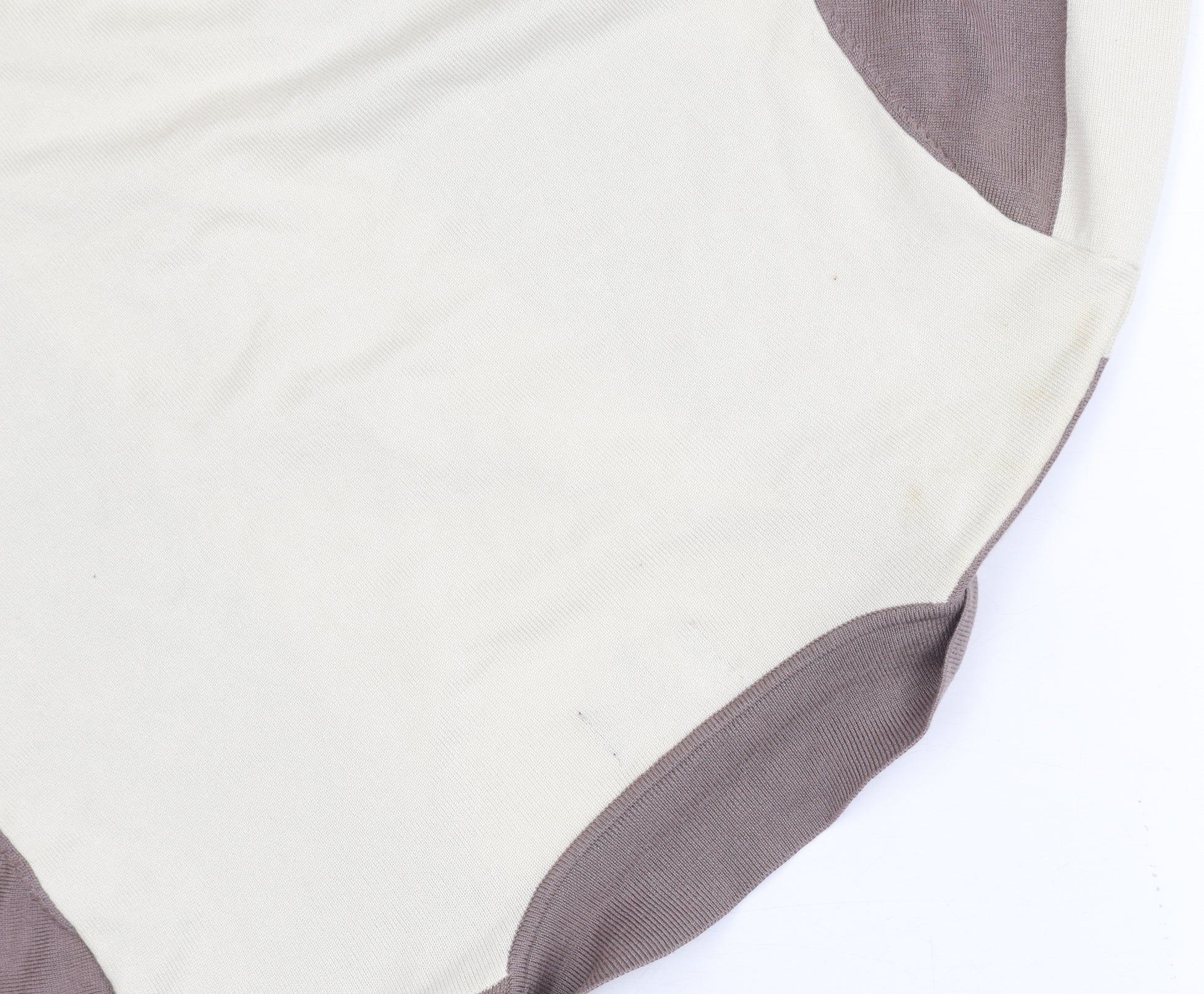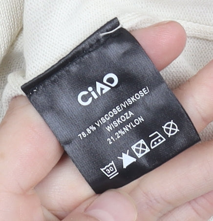 Step into summer style with this Ciao Men's Polo Shirt. Featuring a classic beige colour, this polo offers a sophisticated and versatile look, perfect for various casual occasions. The short sleeves and collared neckline provide a traditional yet trendy appearance. Crafted from a premium blend of 78.8% viscose and 21.2% nylon, this shirt ensures comfort and durability. Its lightweight knitted fabric makes it an excellent choice for staying cool during warmer days. The solid pattern with subtle button closure adds to its stylish appeal. This polo shirt is ideal for casual outings or relaxed weekends, allowing you to maintain an effortlessly chic ensemble. Despite minor wear, this piece remains in very good condition, ready to become a staple in your wardrobe for the upcoming seasons. Get this stylish and comfortable polo shirt at an accessible price today, and elevate your casual wear collection to the next level.